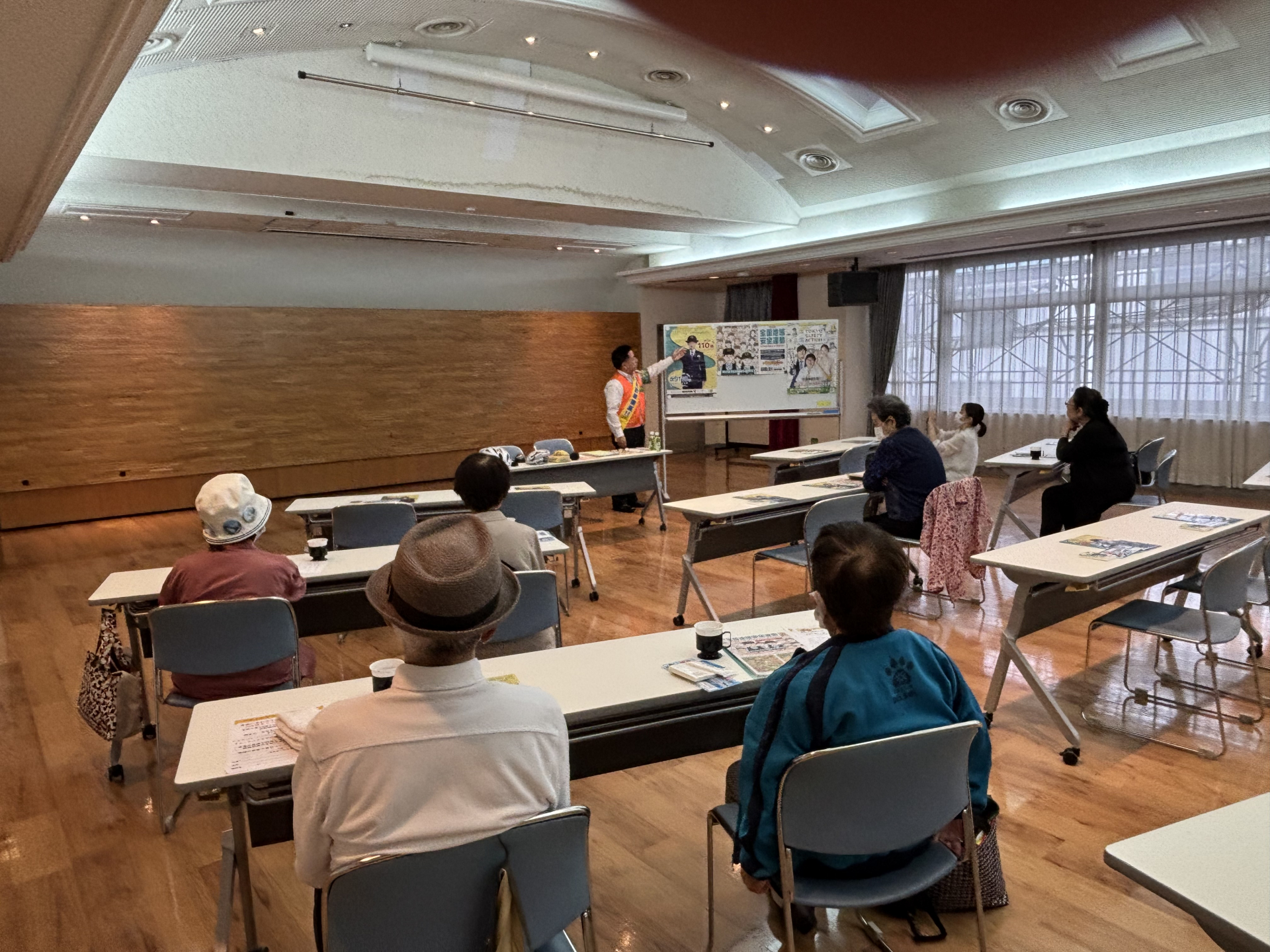 近年の詐欺の傾向やどういう人・家が狙われやすいのか、そしてその対策は、と具体的な例を挙げてわかりやすく説明してくださり、参加者の皆様も熱心に耳を傾けてくださいました。