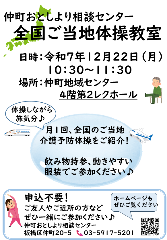 【仲町包括】22日は今年最後の体操教室です。