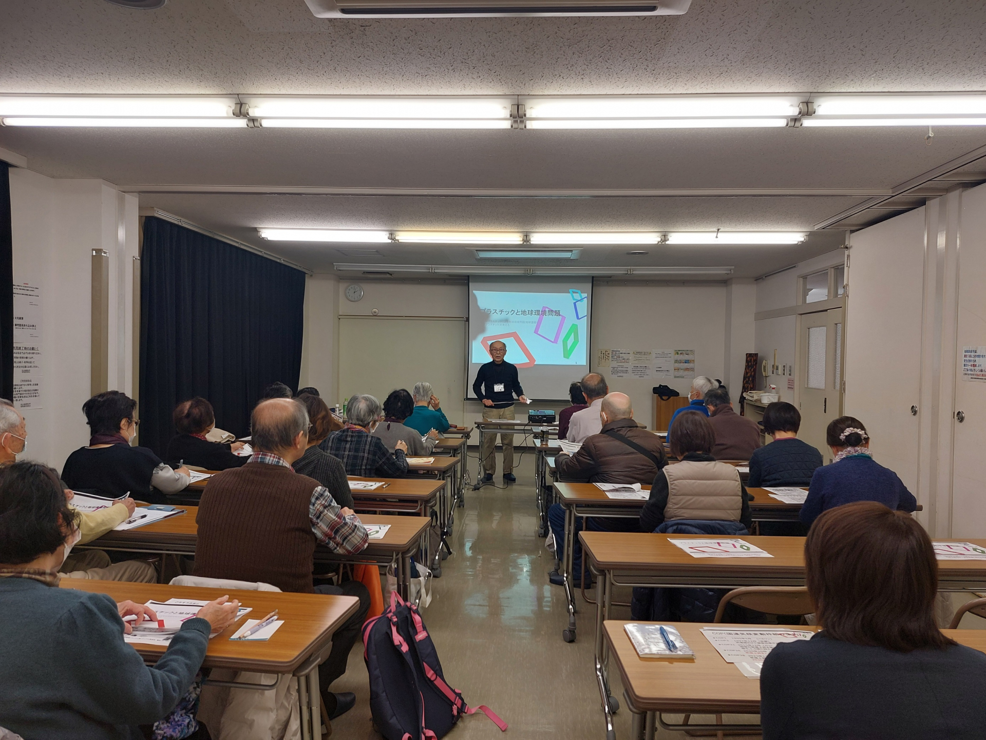 長年、化学会社で勤務されいた吉富さんを講師にお迎えし、プラスチックと地球温暖化、海洋プラスチック、日頃便利に使っているプラスチックとの向き合い方について教えていただきました。