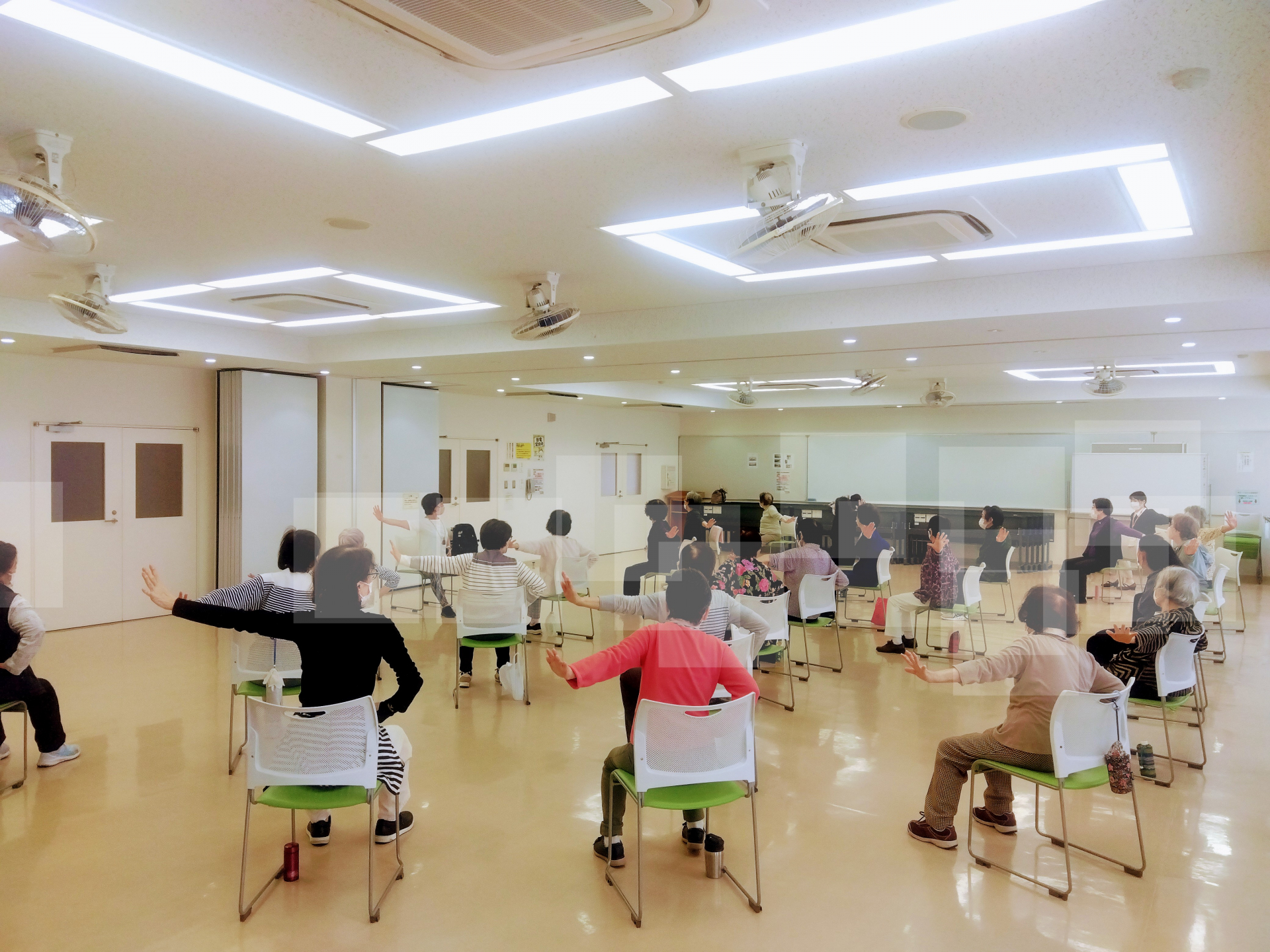 呼吸を意識してのストレッチや音楽のリズムに合わせて全身体操など