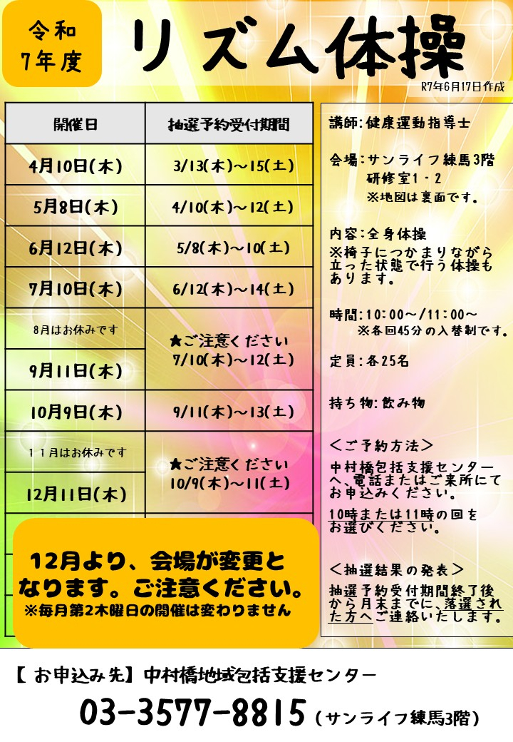 ※※8月のリズム体操は熱中症予防のためお休みになります。ご注意ください※※