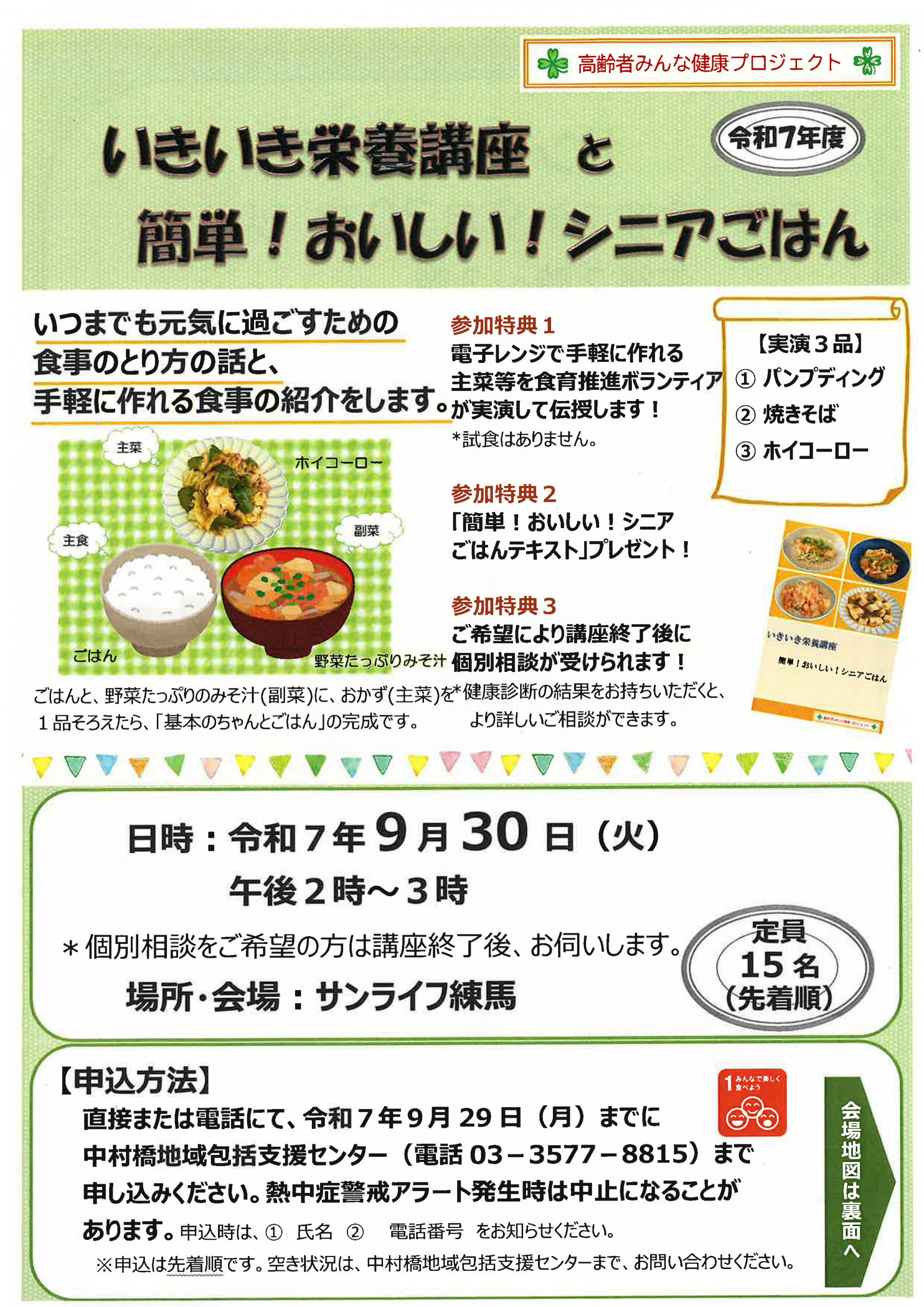 【中村橋包括】9/30「いきいき栄養講座と簡単!おいしい!シニアごはん」参加者募集のお知らせ