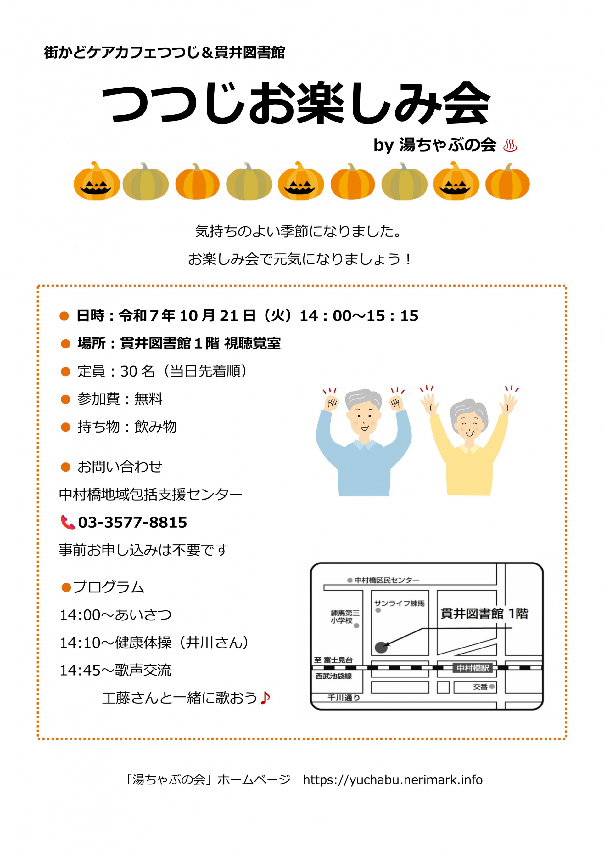 来月は、10月21日(火)に健康体操と歌声交流を行います。