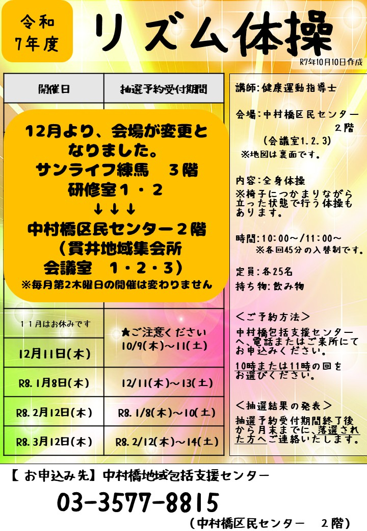※※連絡先が区民センターとなっておりますが、11月中旬まではサンライフ練馬3階に事務所がございます※※