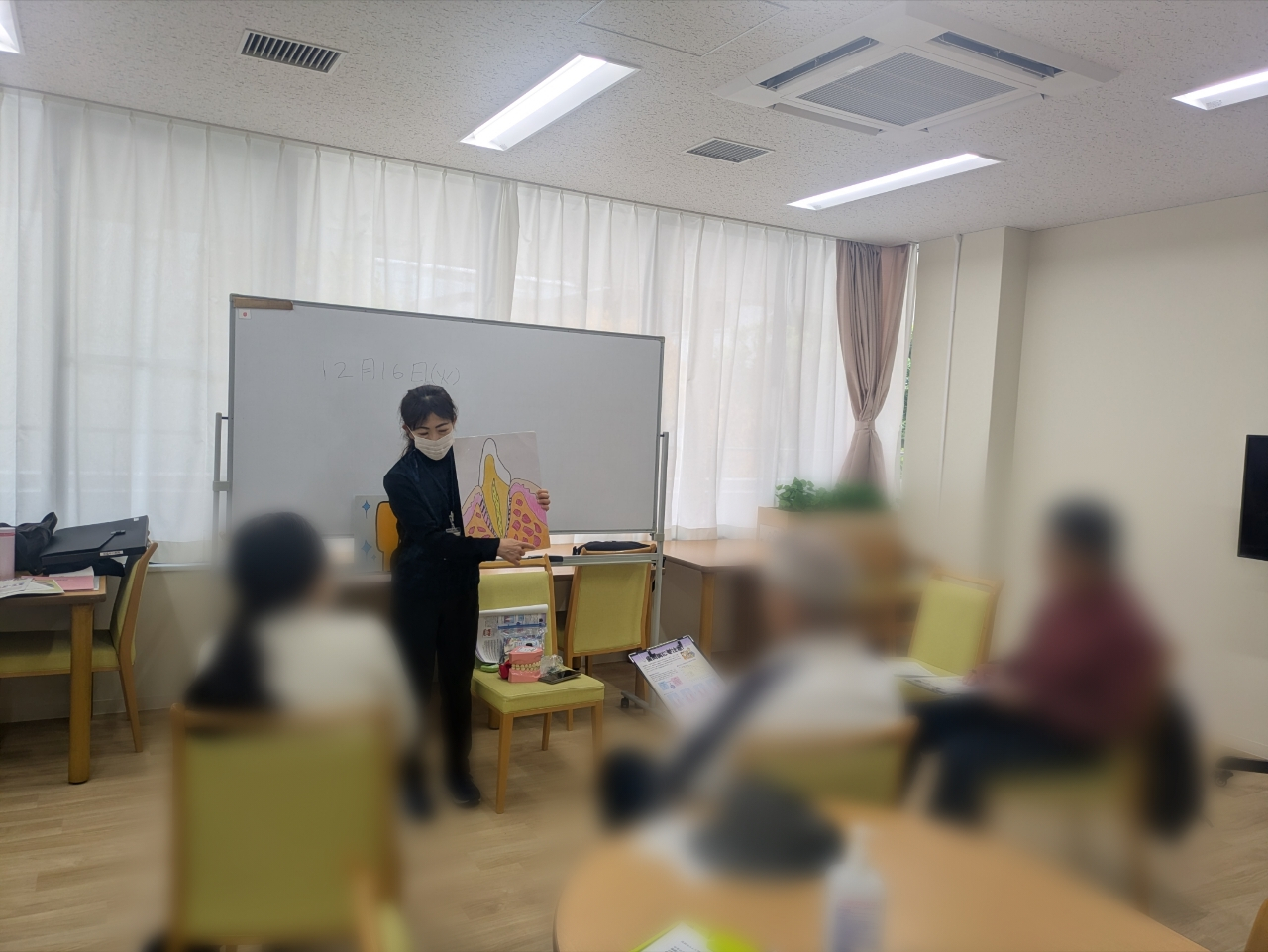 今月は、歯科衛生士より、「歯周病の話・災害時のお口のお手入れ」についての話をしていただきました。