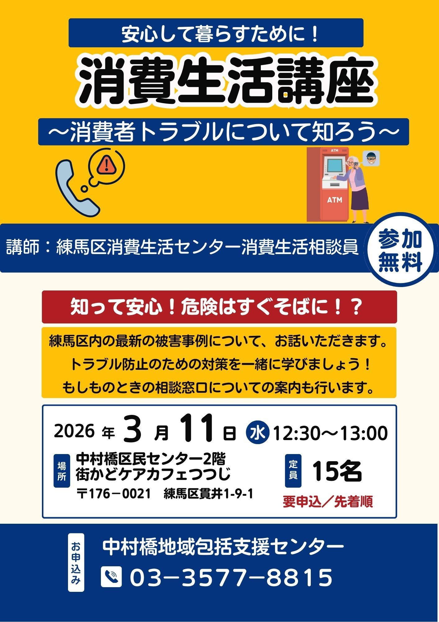 【中村橋包括】【街かどケアカフェつつじ】3月に消費生活講座を開催します!