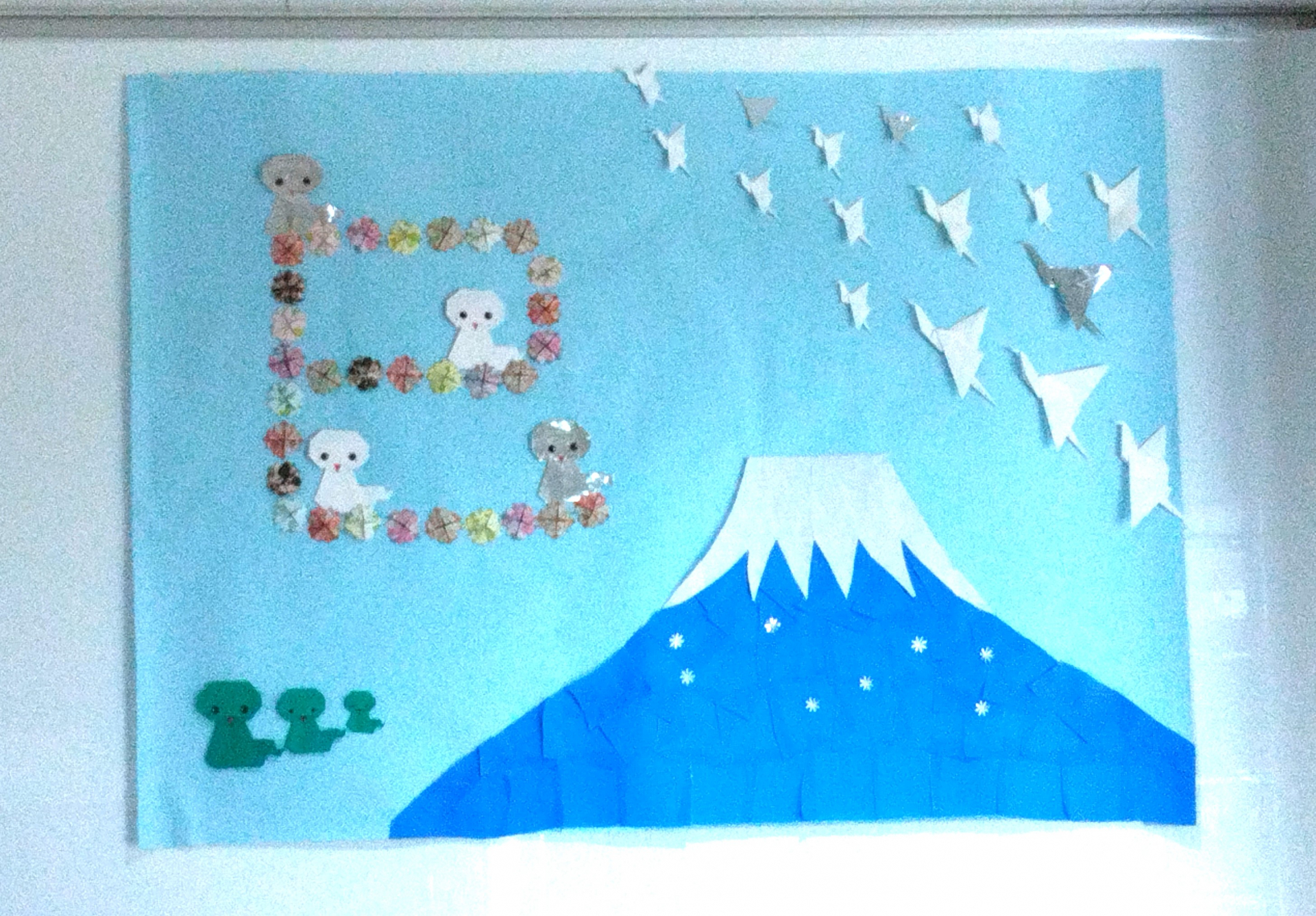 新年早々、民生委員の方が壁紙を作成いただき、展示致しました。