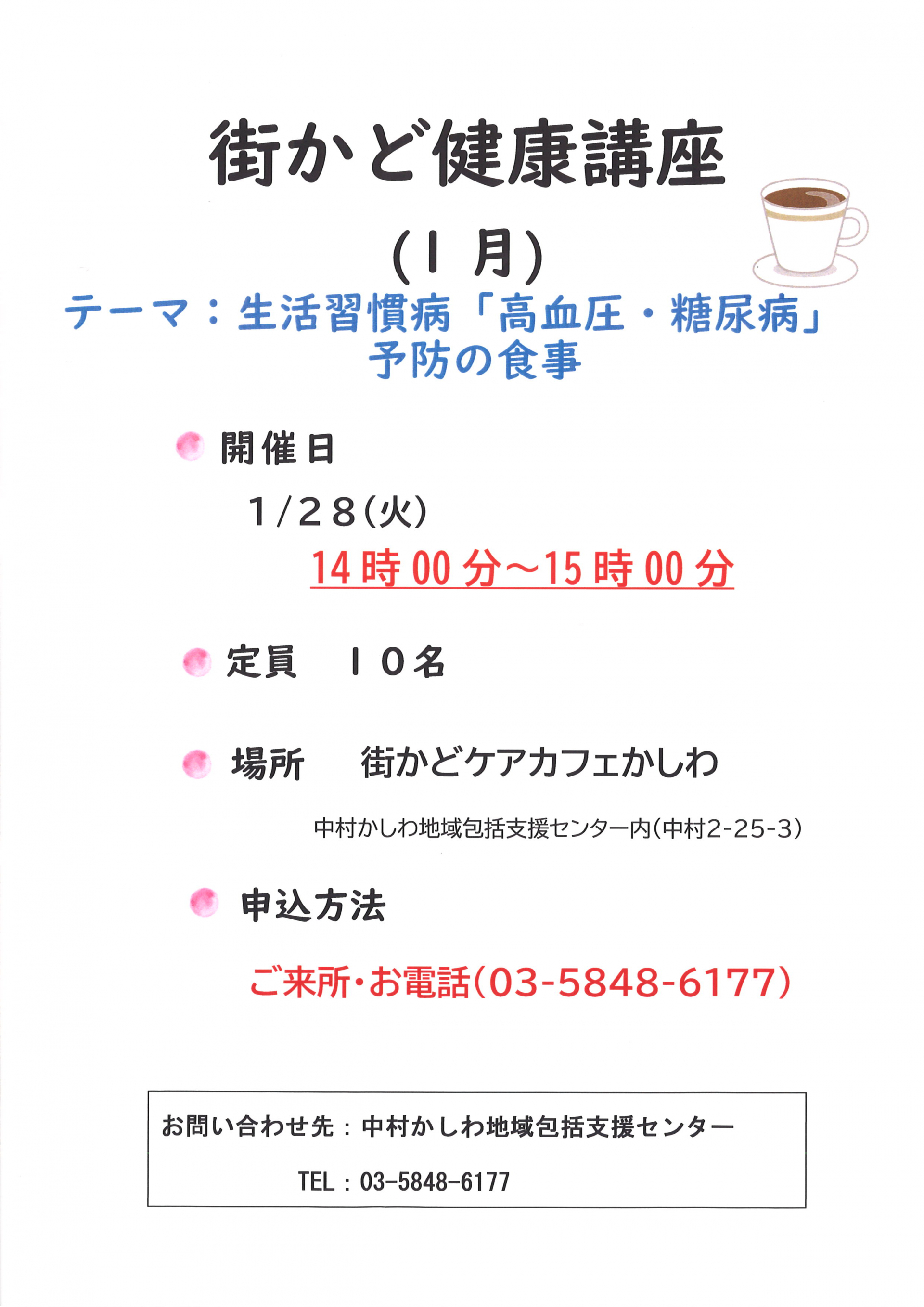 【中村かしわ包括】街かど健康講座を開催します