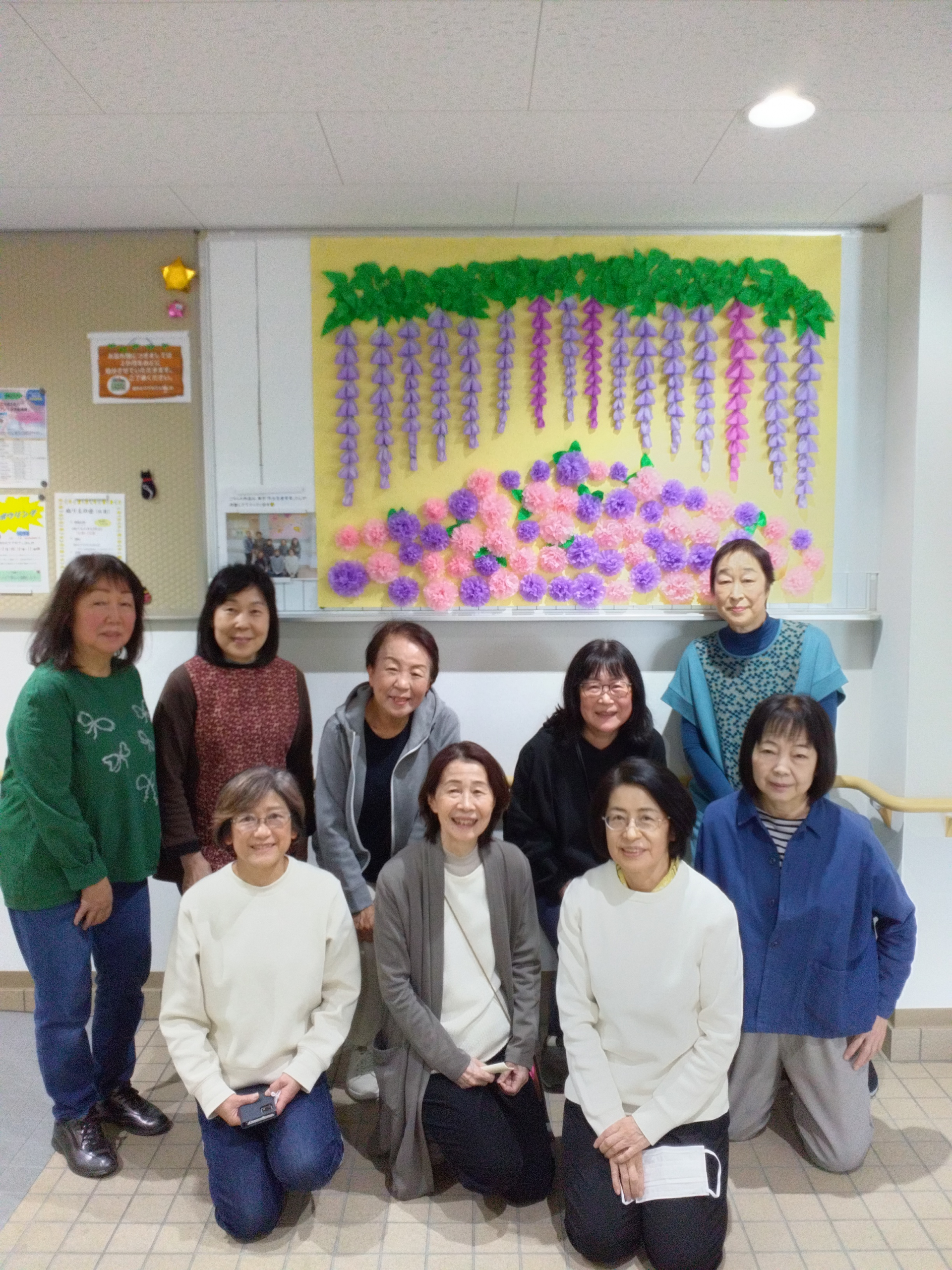 今月も当センターの入り口にある折り紙の作品作りに、9名の民生委員の皆さまがお越しくださいました。