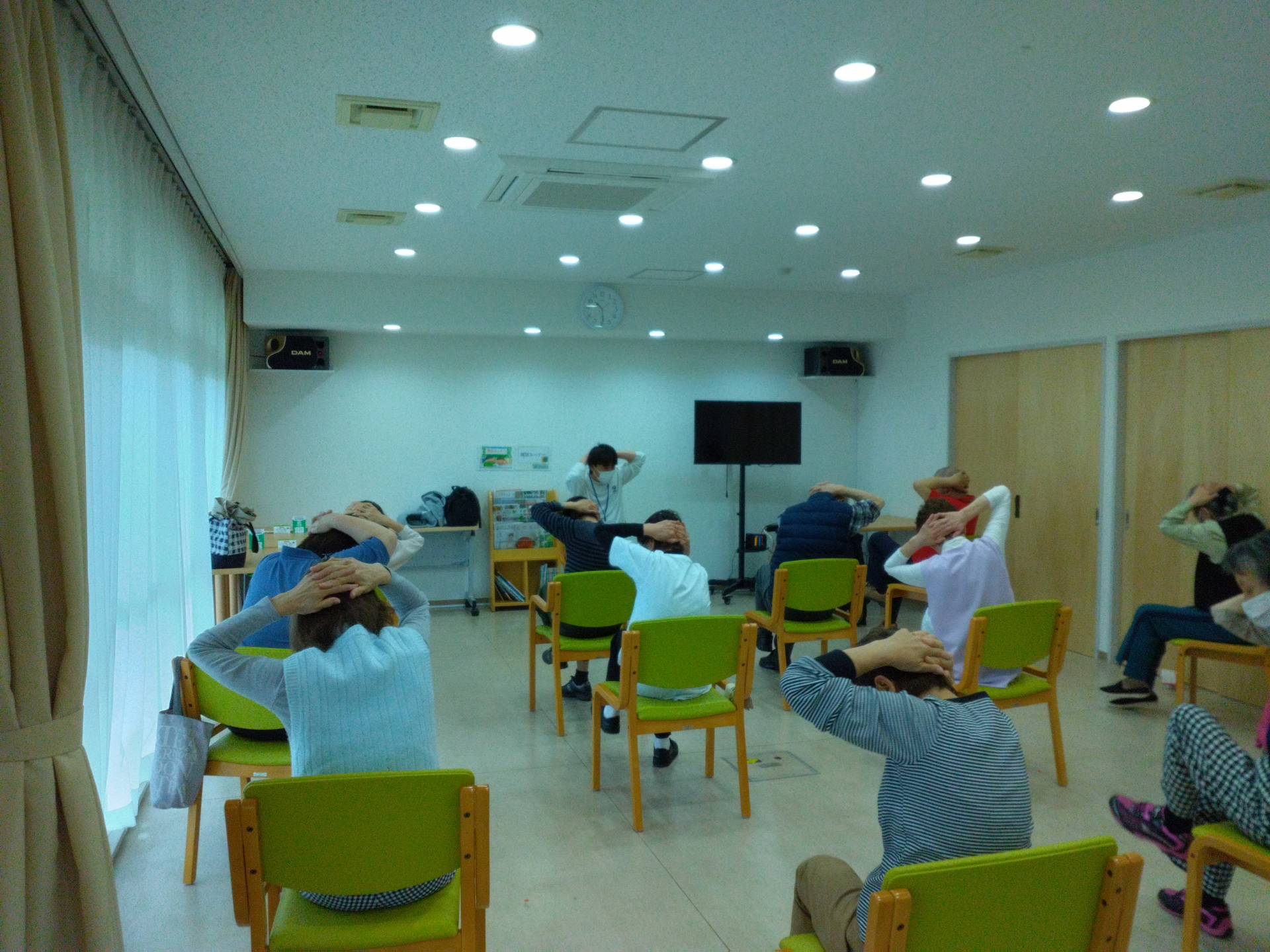 最後は、脳トレを取り入れた体操で締めくくりました(グー・チョキ・パー・きつね)