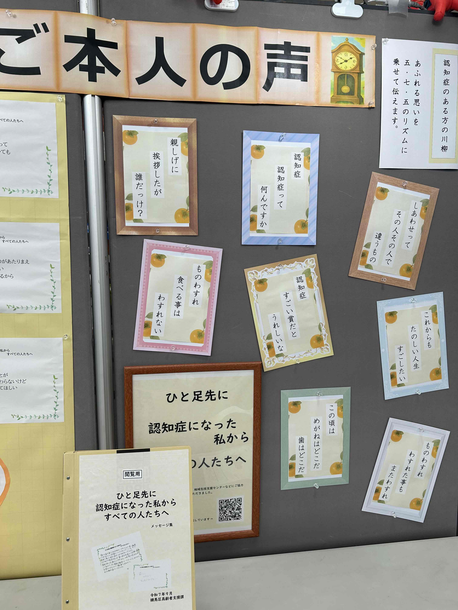 中村かしわでは、同じ圏域の包括と共同して【認プロ】と【認知症本人とその家族にむけてのメッセージ】を展示しました。