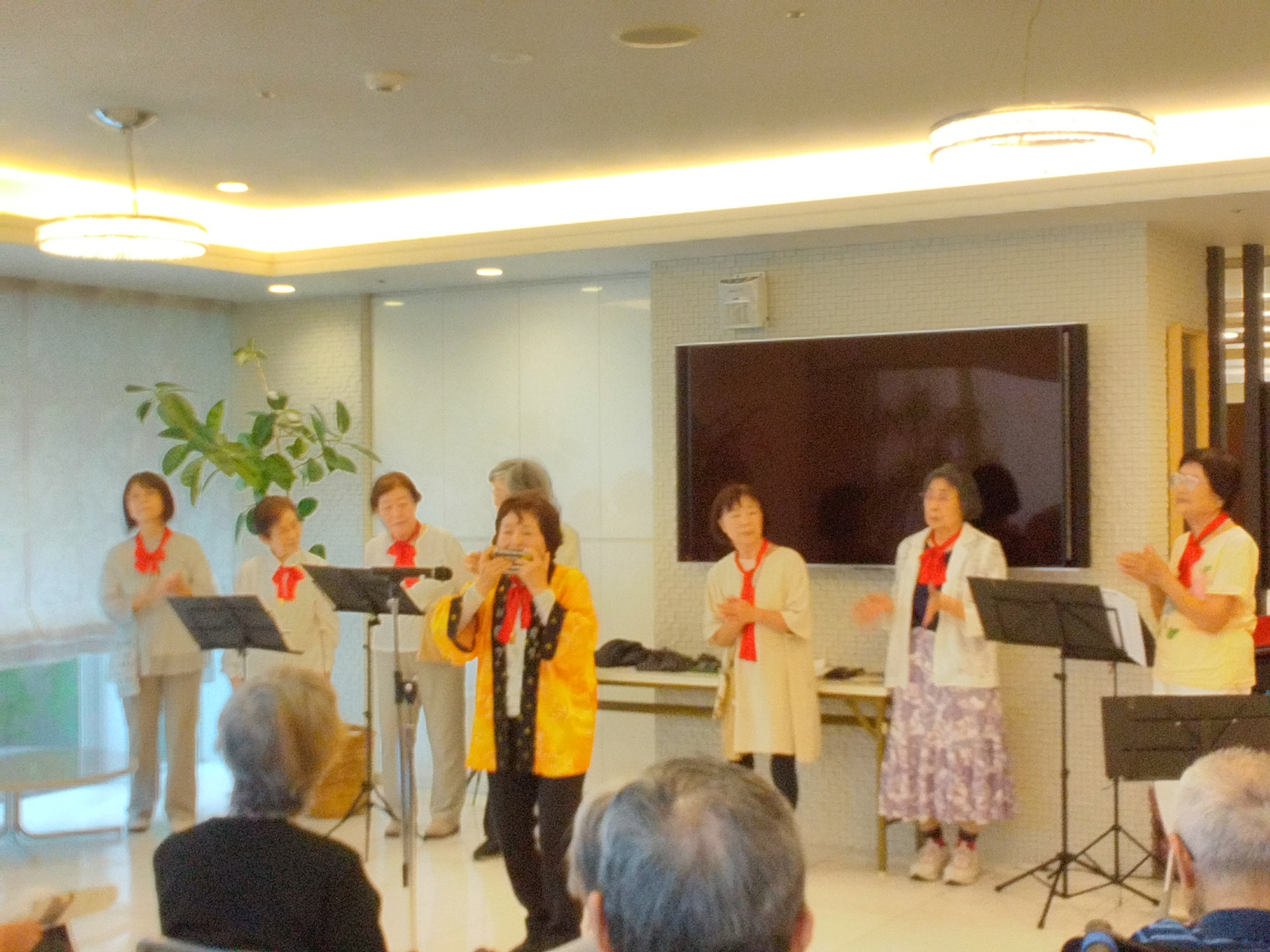 ハーモニカに合わせて歌や踊りを楽しみました。