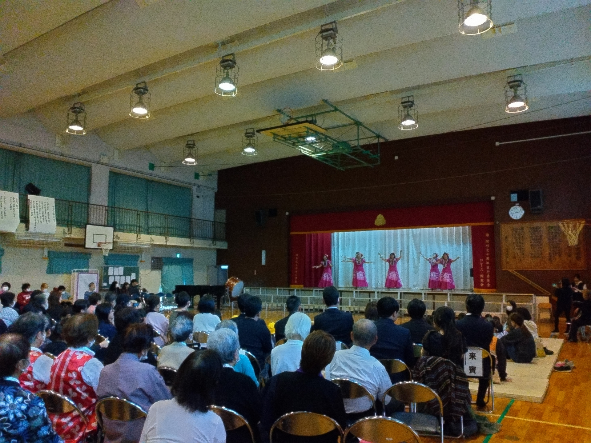 土曜の午後、小学校の体育館には子供から大人まで地域の方々が大勢集まり、さまざまな演奏やダンスを楽しんでいました。