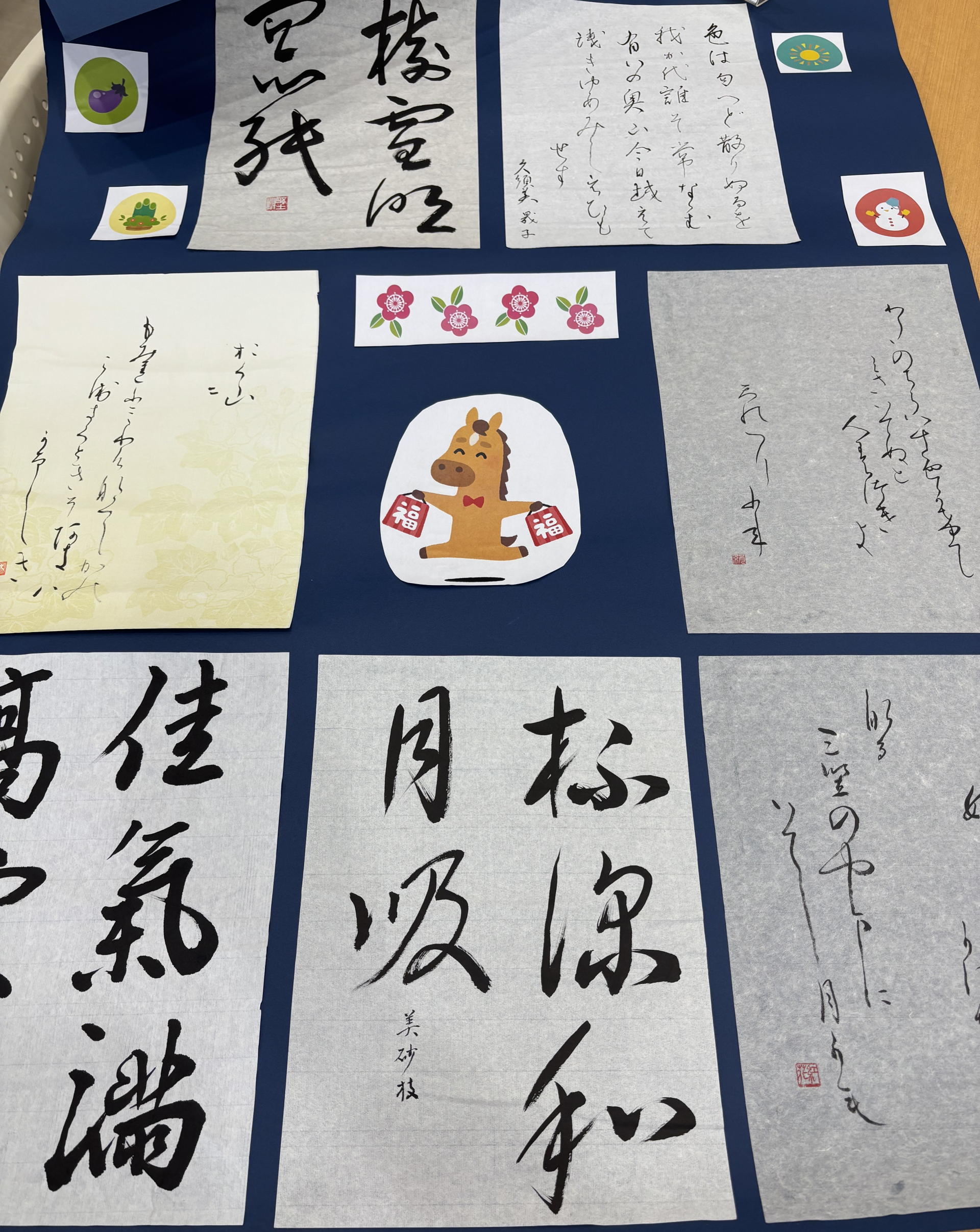 新年用の書道作品を掲示いたしました。