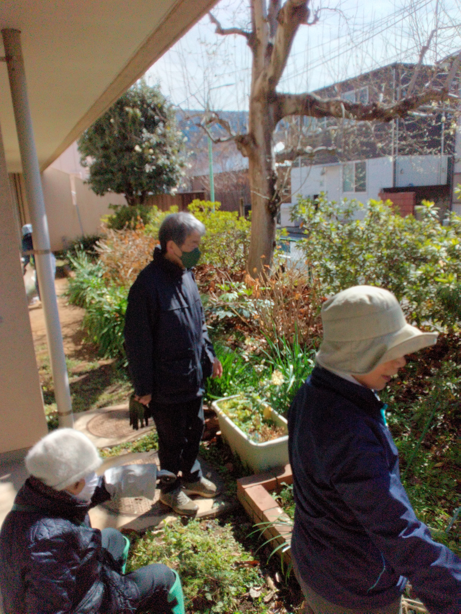 本日3月4日(水)にもくれんの会の皆様がかしわ包括の花壇のお花の植え替えに来られました。