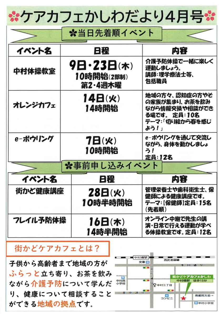 【中村かしわ包括】ケアカフェかしわだよりをリニューアルしました!