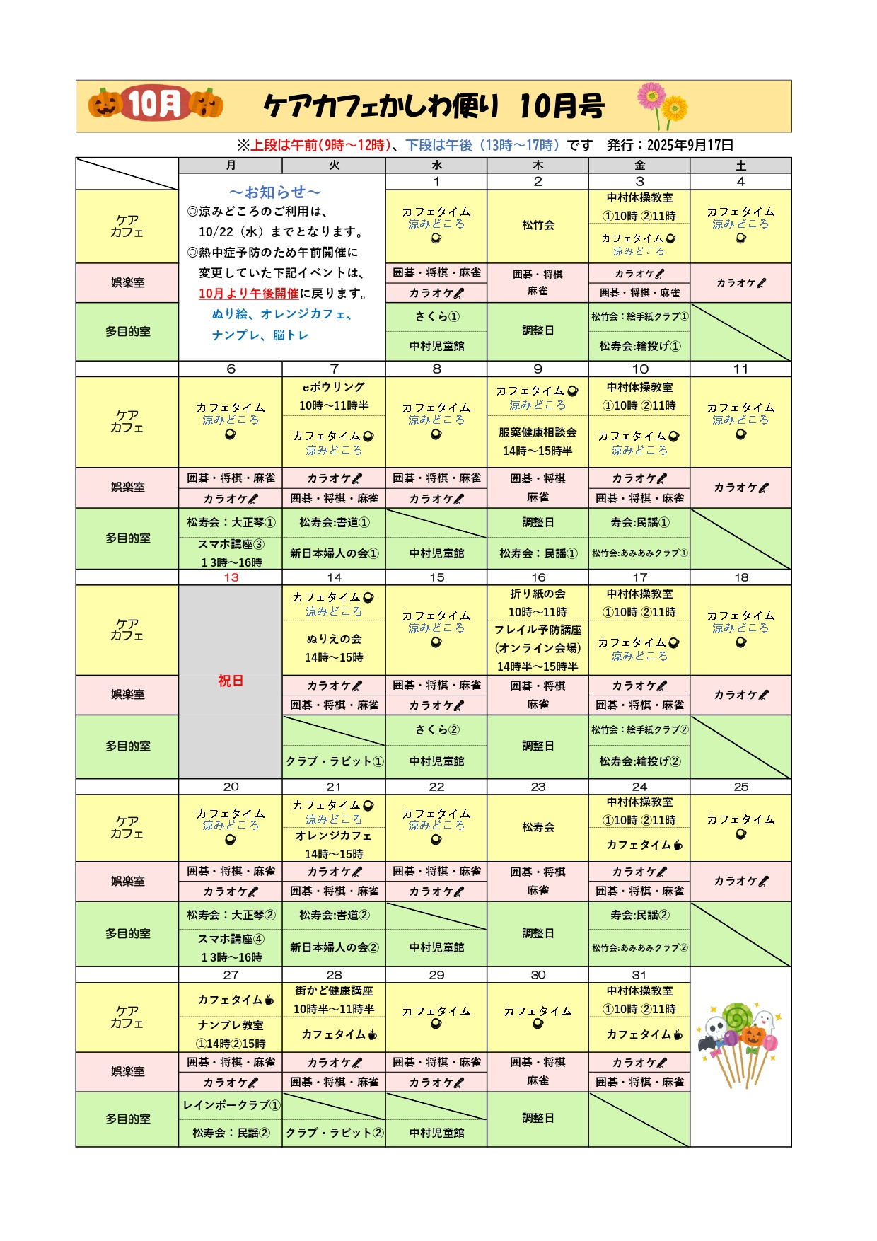 令和7年10月のかしわ便りを作成しましたので、ぜひご活用ください!