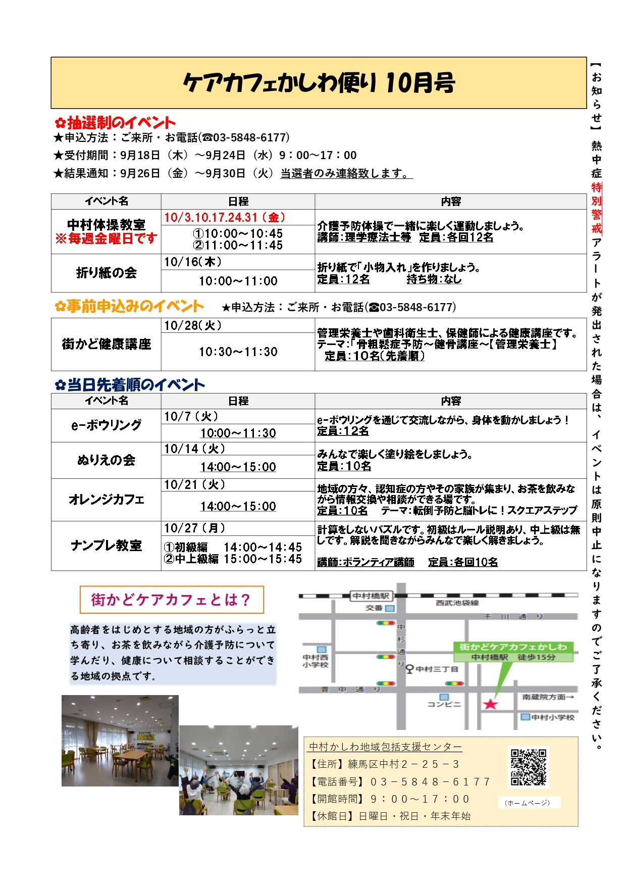 ◎熱中症対策のため午前開催に変更していた下記イベントは、10月より午後開催に戻ります。