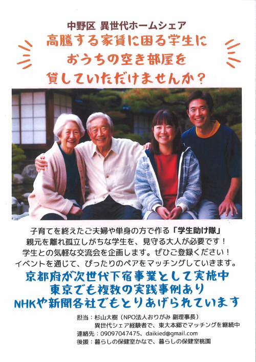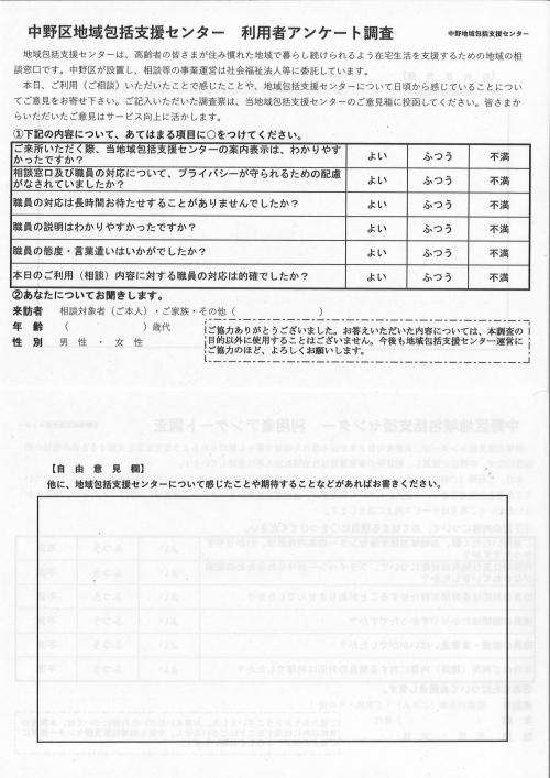 2025.12.16 NEW 【中野包括】おむつ現物申請 お知らせ 2025.12.15 NEW 【中野包括】居場所づくり座談会 お知らせ 2025.12.13 NEW 【中野包括】認知症サポーター養成講座のお知らせ お知らせ 2025.12.11 【中野包括】カタルーべの会 お知らせ 2025.12.10 【中野包括】第5回「中野健幸どまんなか市」を訪れました 活動報告(IN) 2025.11.28 【中野包括】11月度上高田地区民生児童委員協議会に参加しました 活動報告 2025.11.26 【中野包括】ペットの「もしも」に備える ニュース 2025.11.22 【中野包括】防災食の試食体験 お知らせ 2025.11.21 【中野包括】スマホ助成金 お知らせ 2025.11.17 【中野包括】一台二役の歩行器! お知らせ 2025.11.14 【中野包括】R7.11月のとまり木♪ ニュース 2025.11.13 【中野包括】男の健康ボイス野方♪ ニュース 2025.11.12 「健友会 オレンジカフェきょうりつ」に参加しました。 活動報告 2025.11.12 【中野包括】帝京平成大学の学園祭へ 活動報告 2025.11.12 【中野包括】ひきこもり地域家族会「中野わの会」勉強会のお知らせ お知らせ 1 2 3 … 28