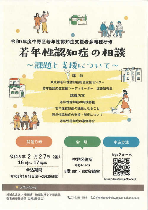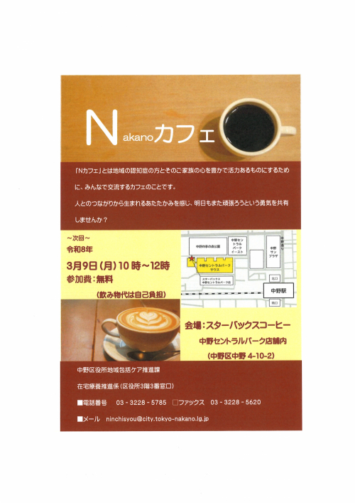 2026.01.24 【中野包括】「とまり木カフェ」を開催しました。 活動報告(IN) 2026.01.24 【中野包括】健幸プラザへリニューアル! お知らせ 2026.01.22 【中野包括】今月のとまり木カフェ お知らせ 2026.01.22 【中野包括】上高田東高齢者会館予定表 ニュース 2026.01.21 「後見人等への意思決定支援研修」に参加しました。 活動報告 2026.01.21 【中野包括】運転免許の自主返納計画! お知らせ 2026.01.21 【中野包括】『若年性認知症支援者多職種研修』のご案内 お知らせ 2026.01.20 【中野包括】「夜のNカフェ」のご案内 お知らせ 2026.01.20 【中野包括】なかの生涯学習大学 ニュース 2026.01.19 【中野包括】都民向け公開講座のお知らせ ニュース 2026.01.19 【中野包括】ケアマネサロン中野 活動報告 2026.01.17 【中野包括】Nカフェ(オレンジカフェ) ニュース 2026.01.17 【中野包括】CMAT・第二ブロック情報交流会に参加しました 活動報告 2026.01.15 【中野包括】ケアマネ部会共催中部圏域ケアマネ交流研修会・事例検討会開催 活動報告 2026.01.14 【中野包括】歩行姿勢測定会 お知らせ 1 2 3 … 31