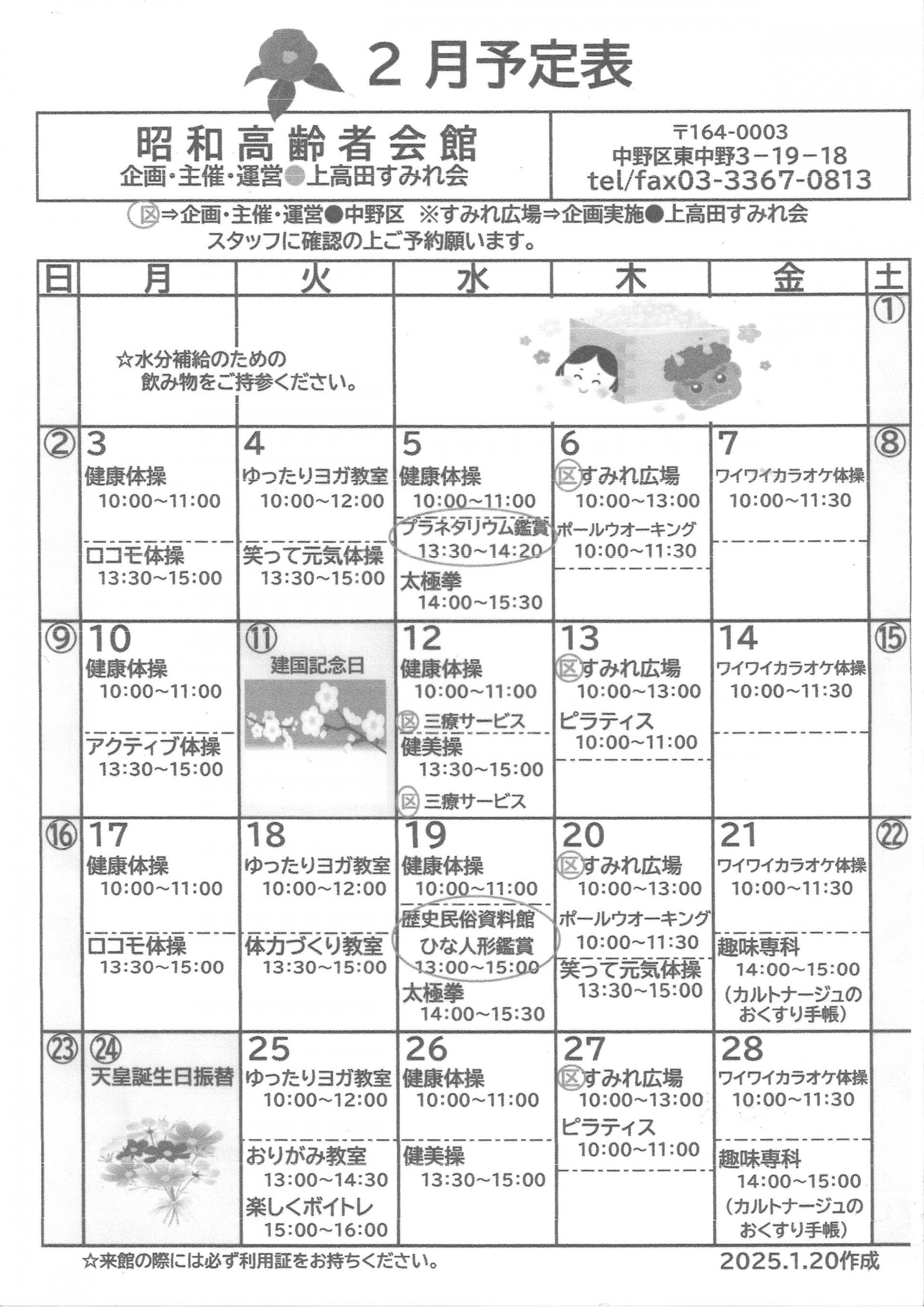 R7.2月からの昭和高齢者会館のスケジュールです!