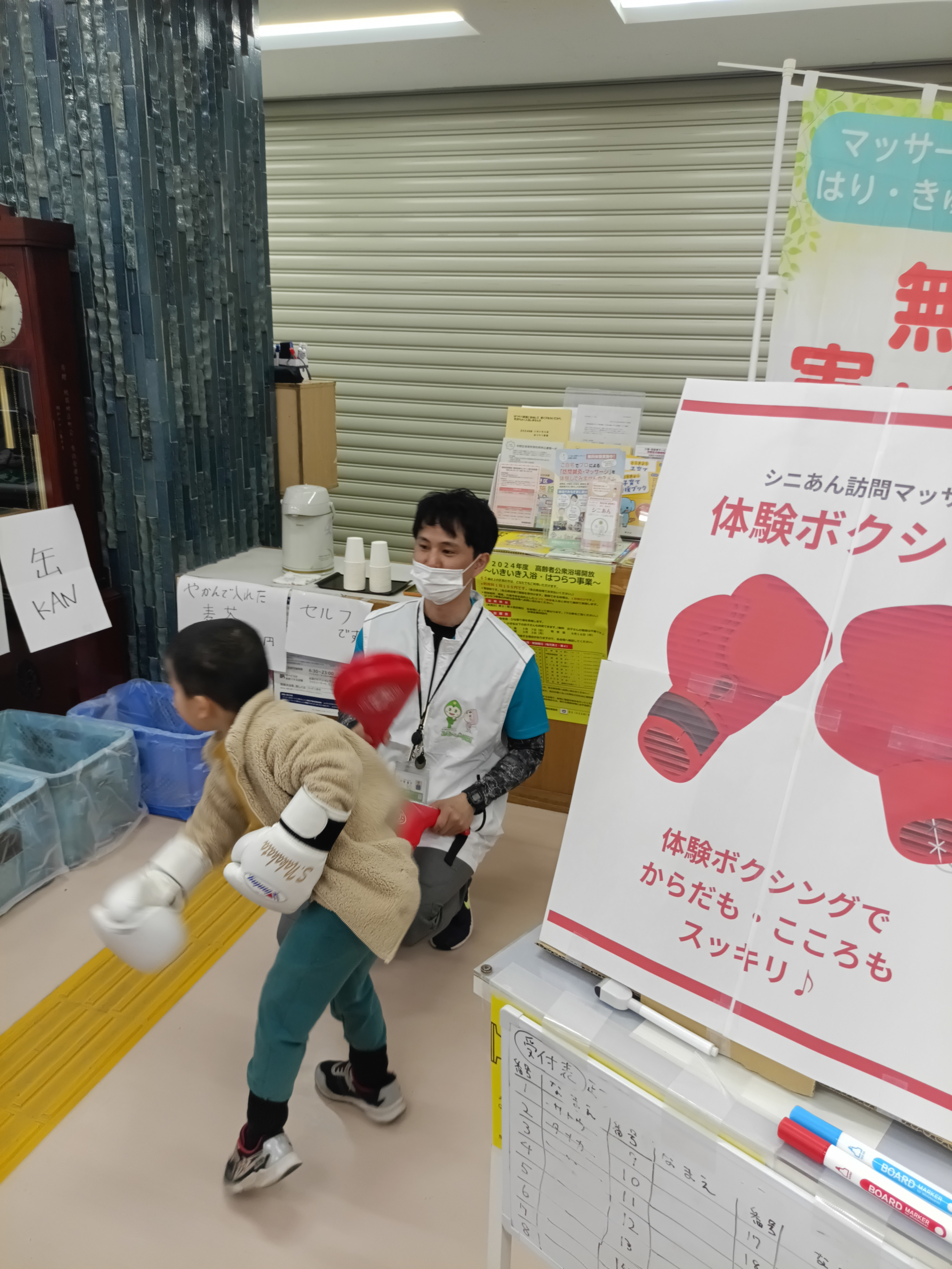 1Fでは「シニあん訪問マッサージ」によるボクササイズ体験を実施!体験ボクシングで心も体もスッキリしました♪