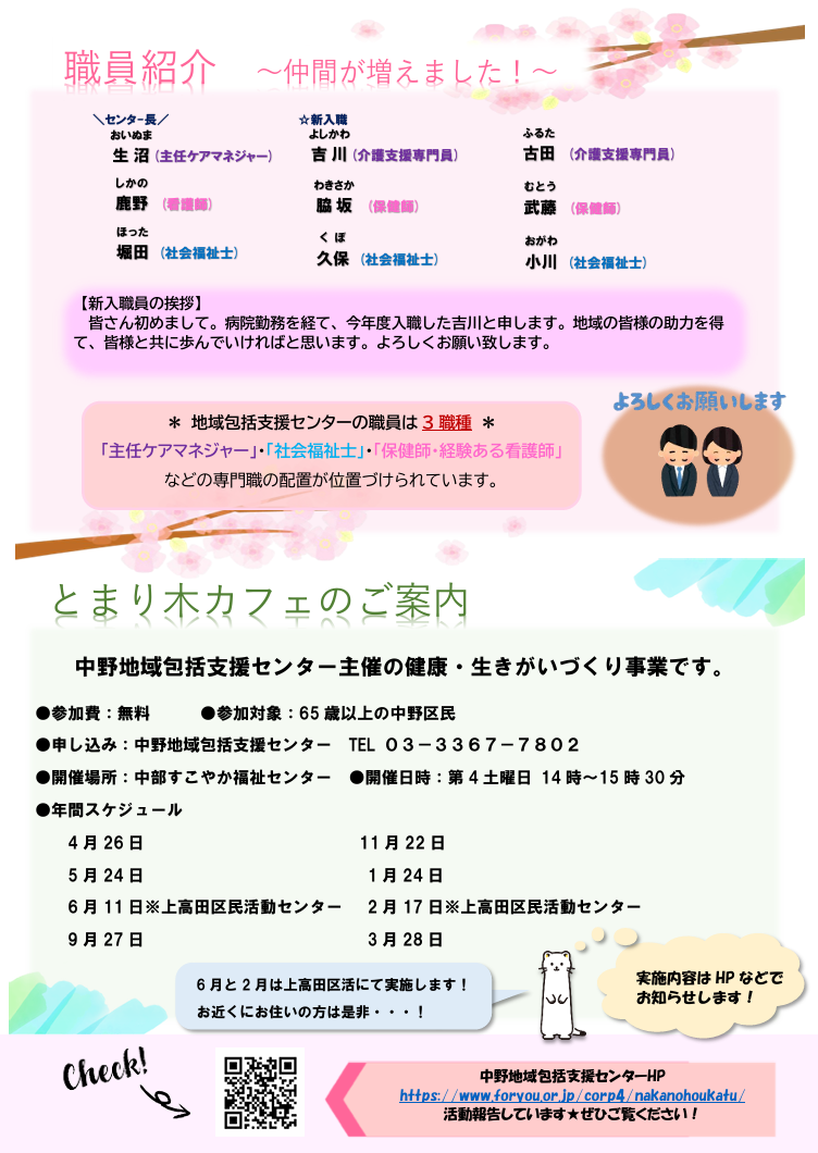 ◇中野包括職員紹介 新入職員より一言コメントも入っています!