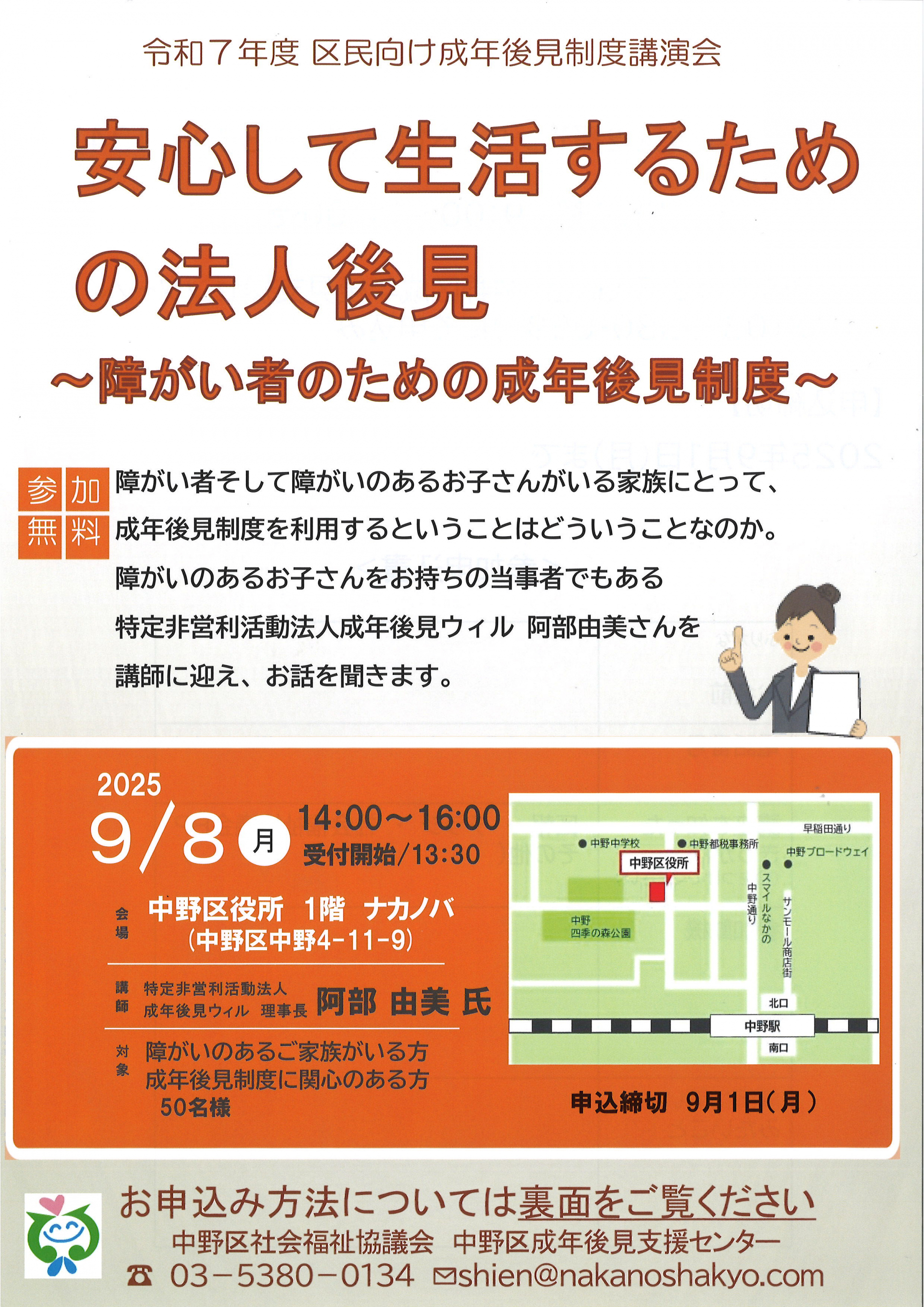 【中野包括】区民向け成年後見制度講演会のお知らせ