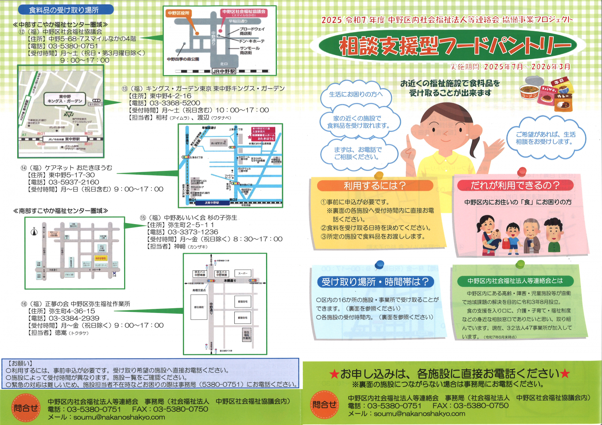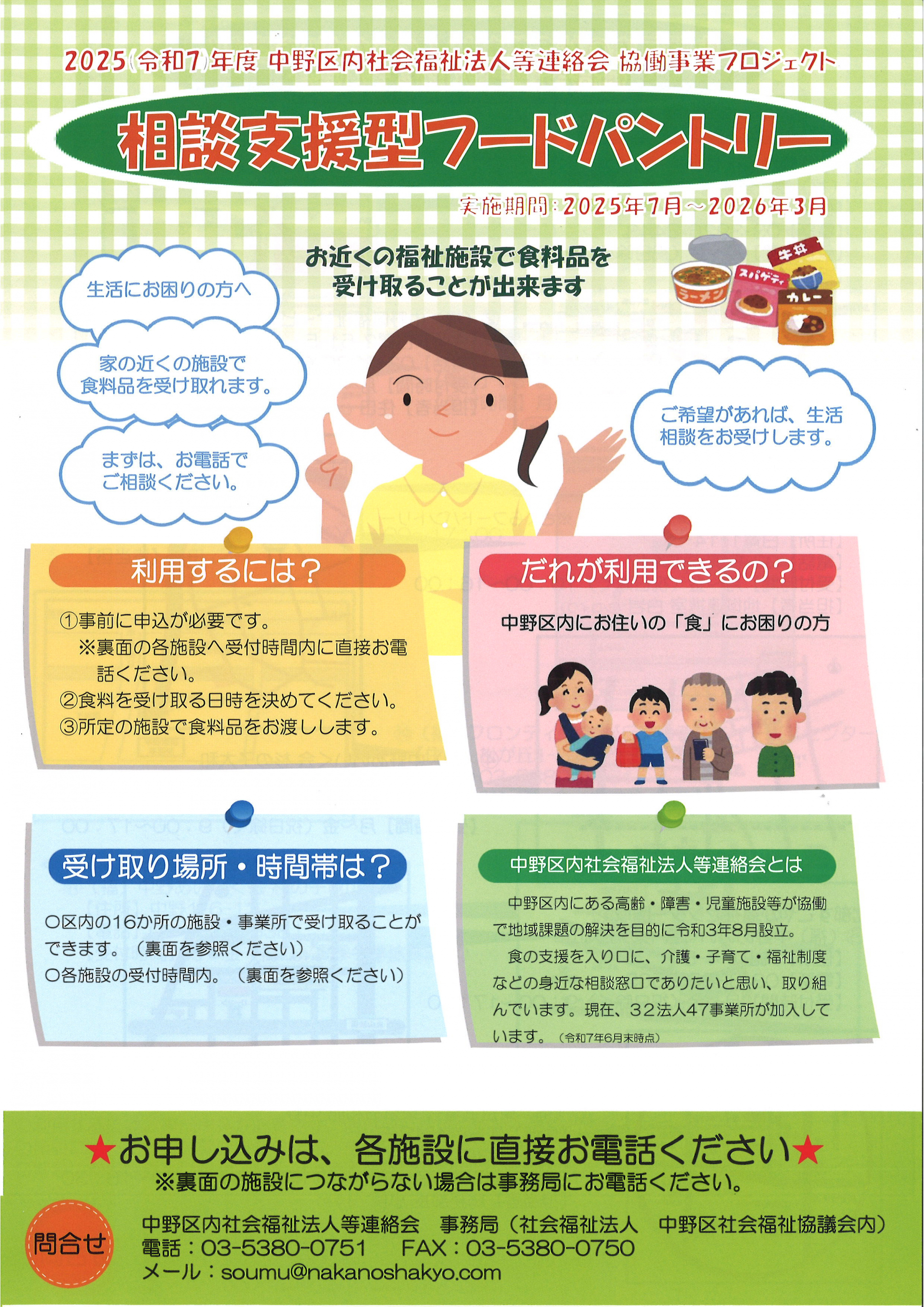 中野区内にお住まいで「食」にお困りの方を対象にご自宅の近くの福祉施設で食料を受け取ることができます!