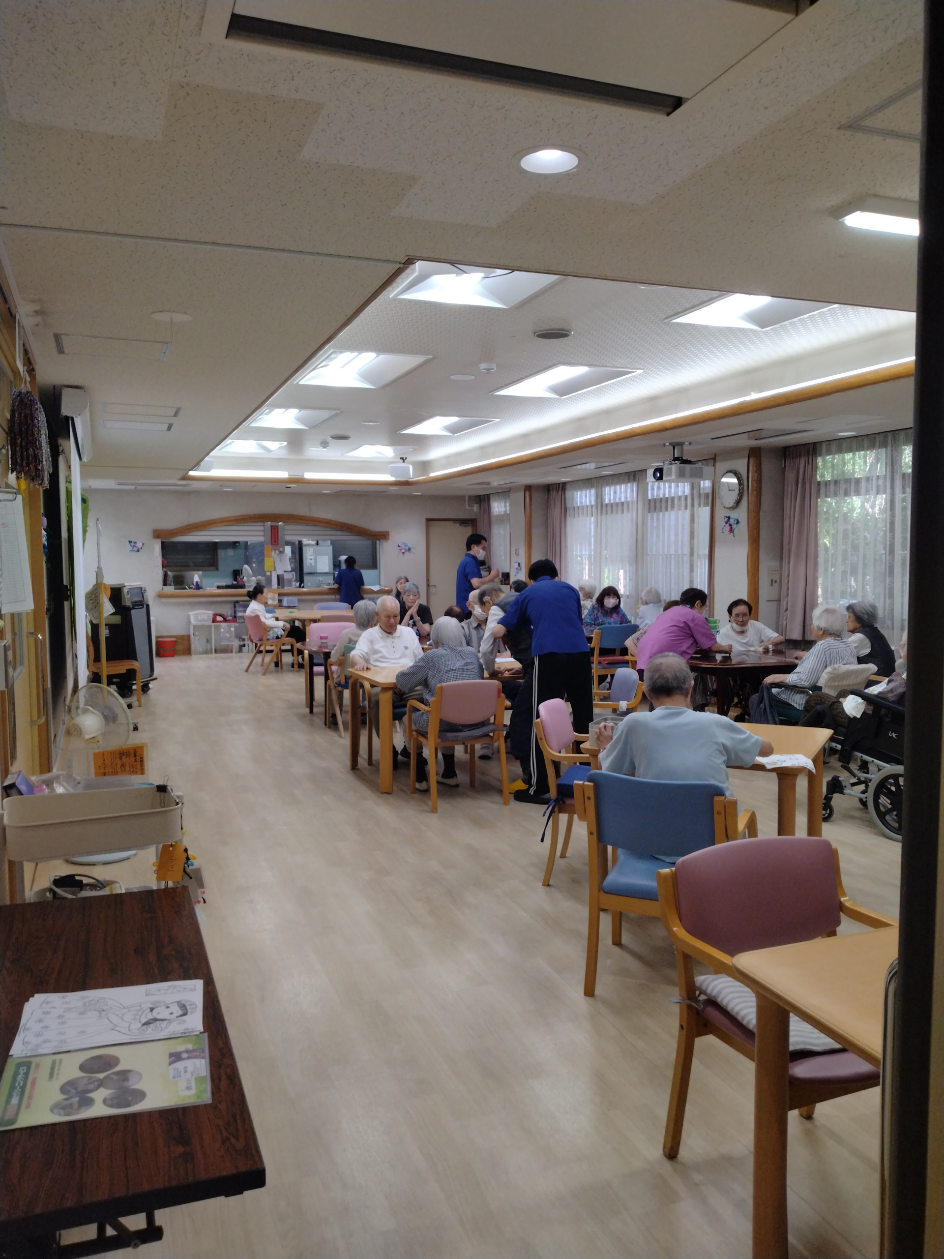 訪問した時は暑さが厳しいこともあって、認知症対応型のデイの方の出席が少なく、1Fで一緒に活動されていました。