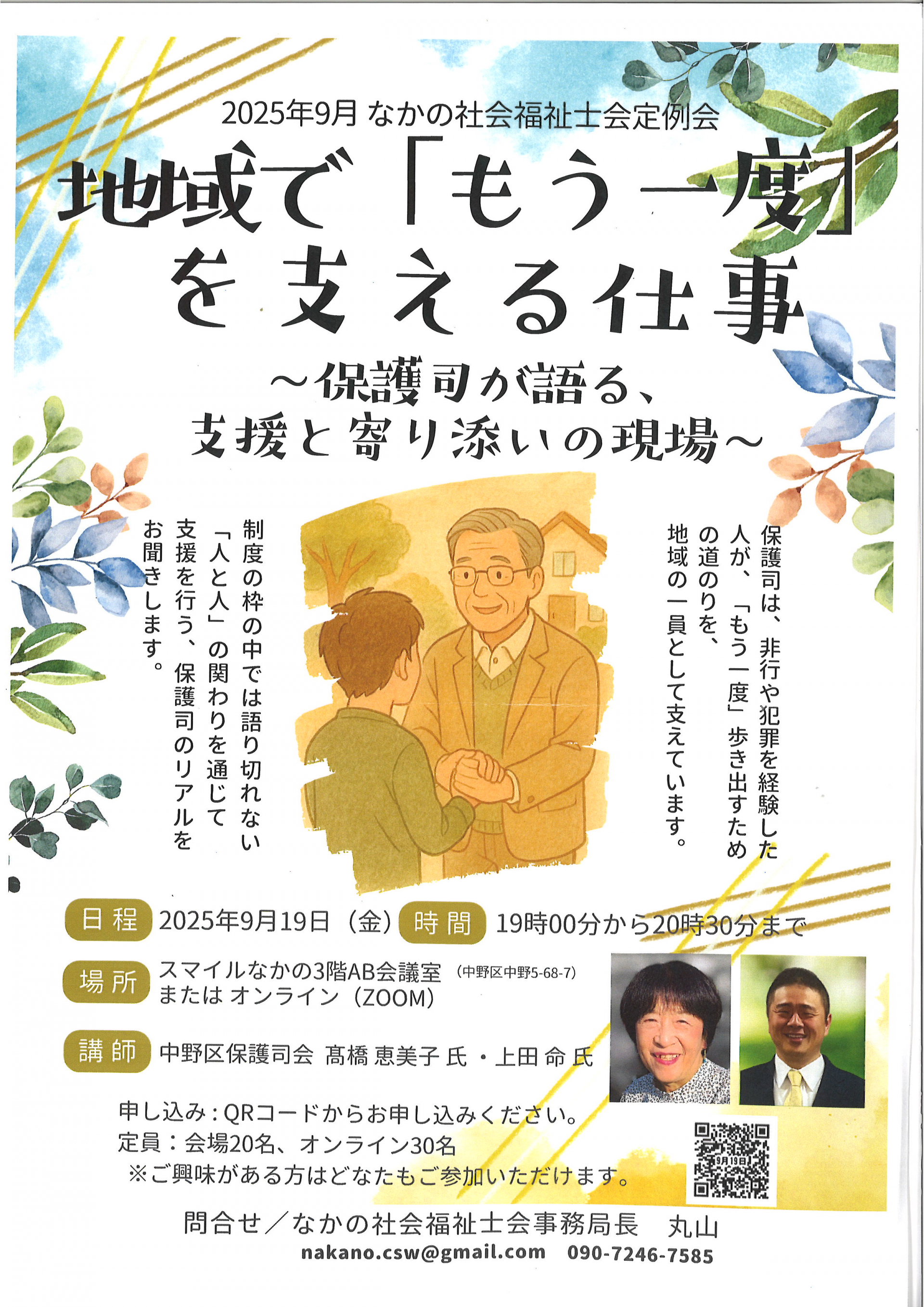 中野区保護司会から講師をお呼びして、現場の声を聴講することができます。