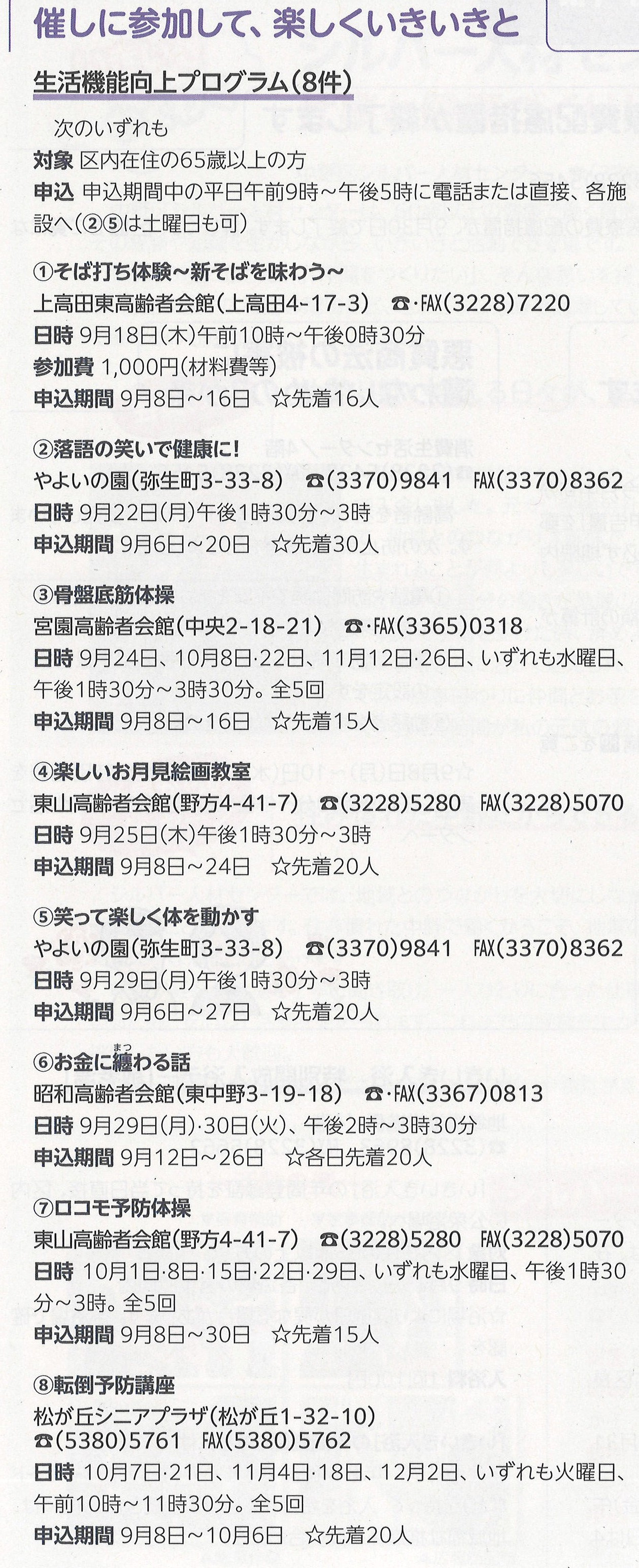 そば打ち体験、落語、体操教室等々・・・気になる催しものやお近くの開催場所へ是非、お問い合わせください。