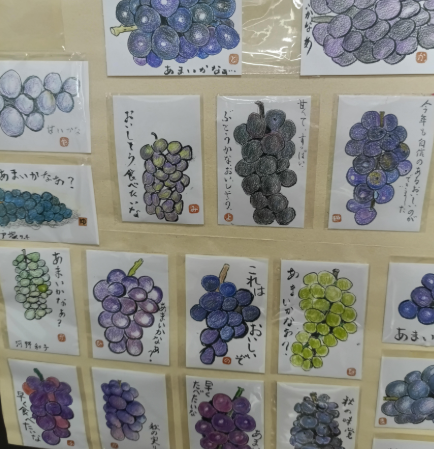 秋の味覚、ブドウの作品はどれも美味しそうで、一粒一粒、丁寧に描かれていることが印象的でした。