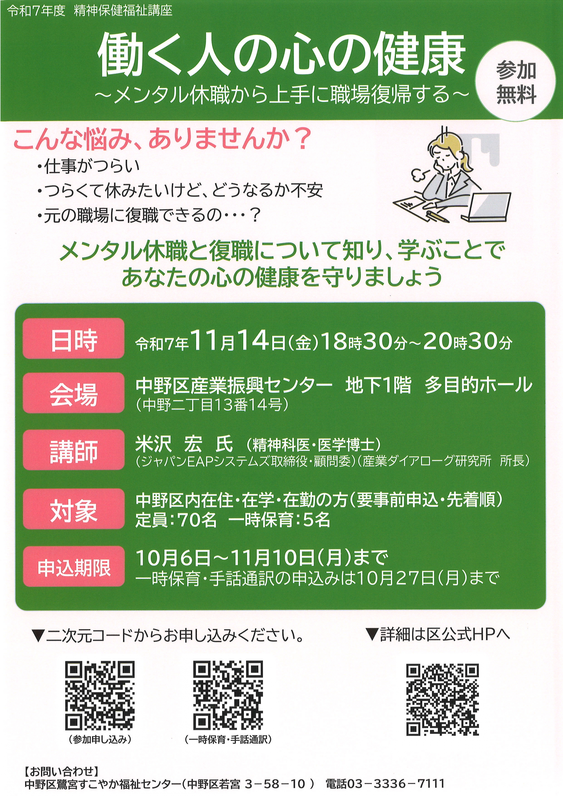 【中野包括】働く人の心の健康講座