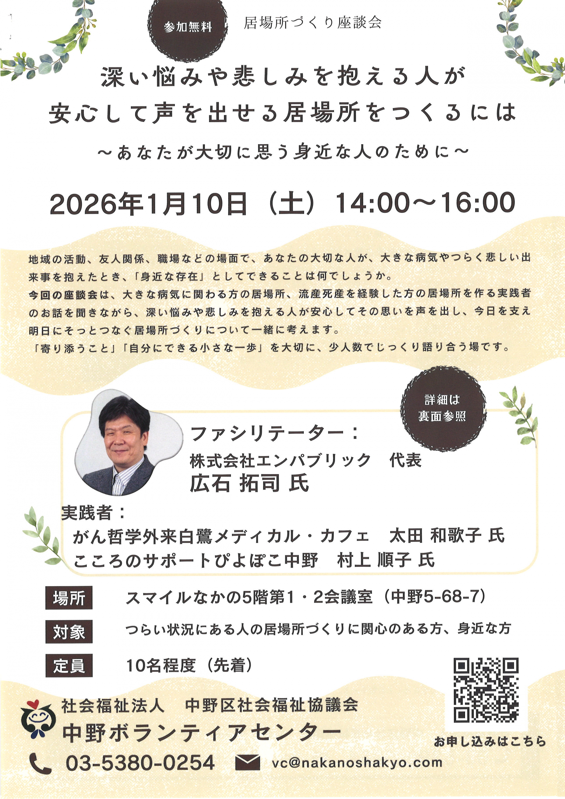●対象:つらい状況にある人の居場所づくりに関心のある方、身近な方