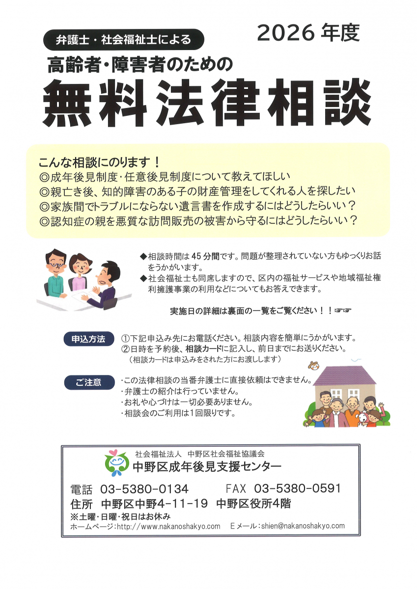 弁護士、社会福祉士が45分間の相談時間でお話しを伺うことができます。