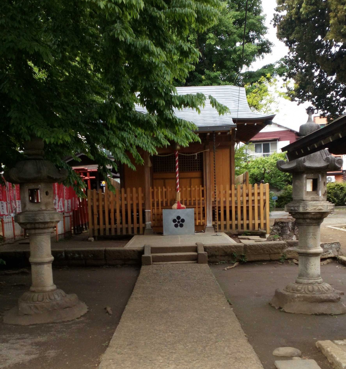 境内には本殿や鳥居があり、境内にある如意輪観音像と二基の庚申塔は、中野区の有形文化財に指定されています。