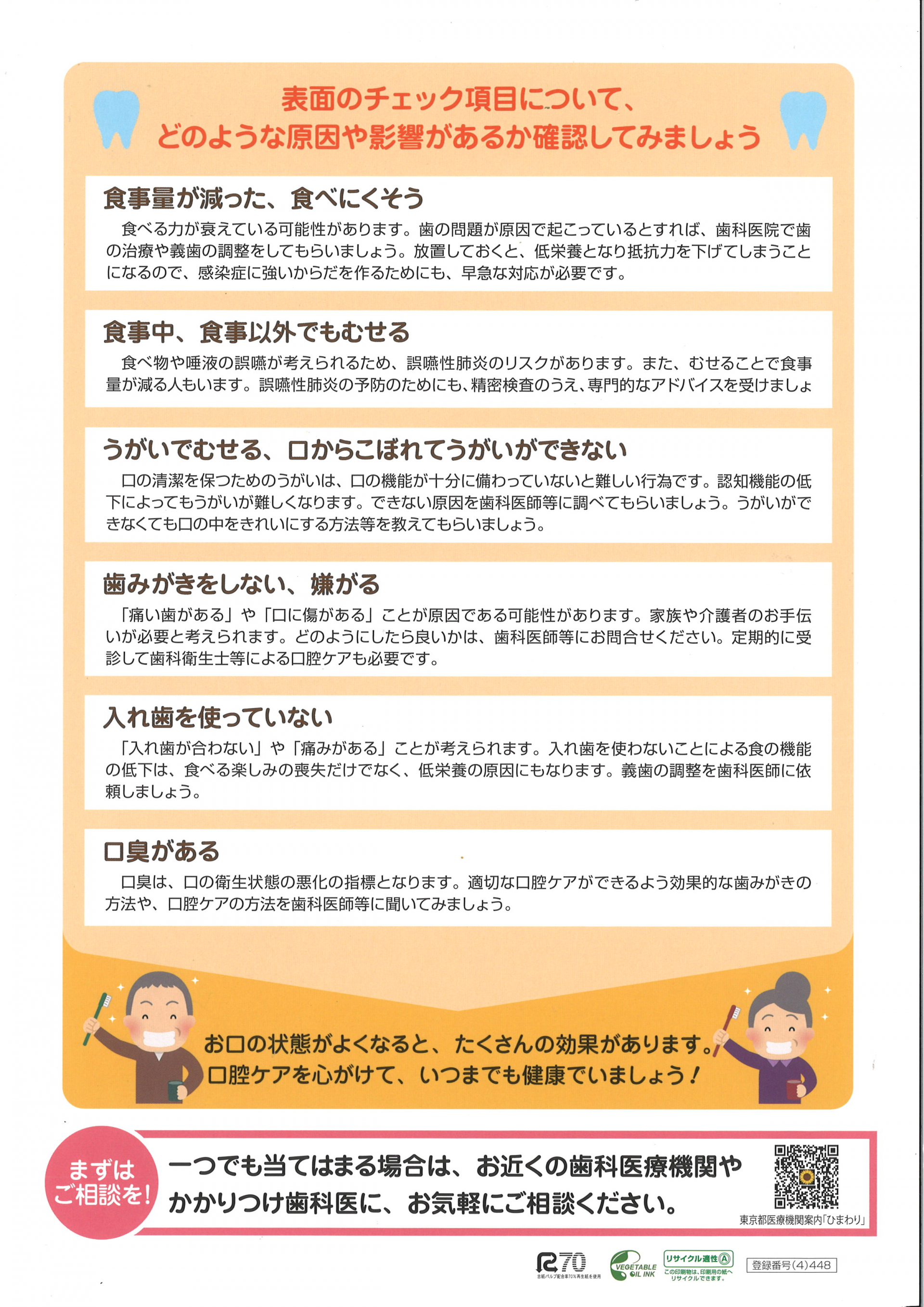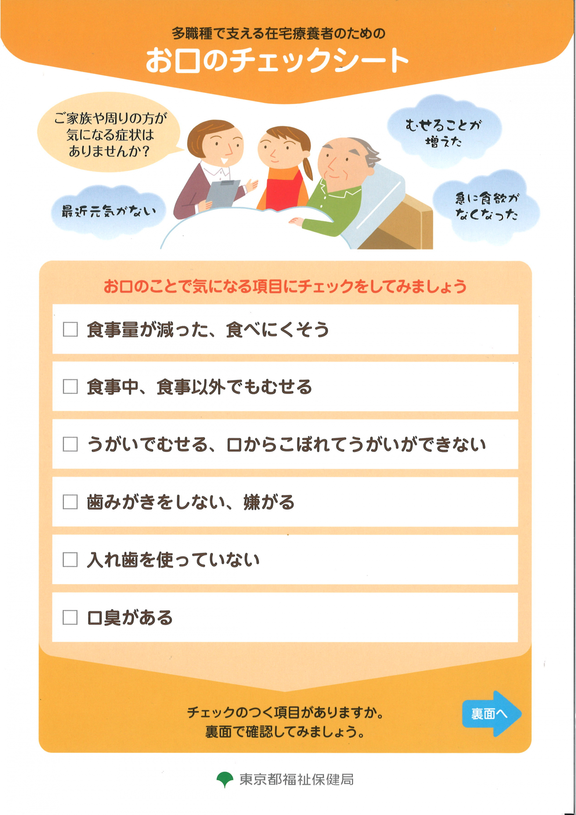 ご家族、介護者やケアマネジャーがこちらのシートを参考に確認し必要があれば医療機関