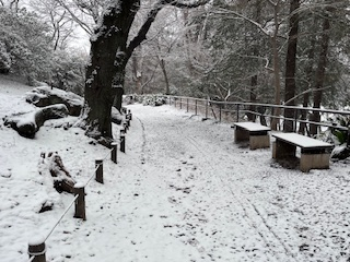 2/8週末の朝は雪景色になり、白い風景に気分も弾んで公園まで散歩しました。