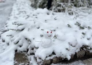 道端に可愛い雪だるまを見つけました。ほっこり。