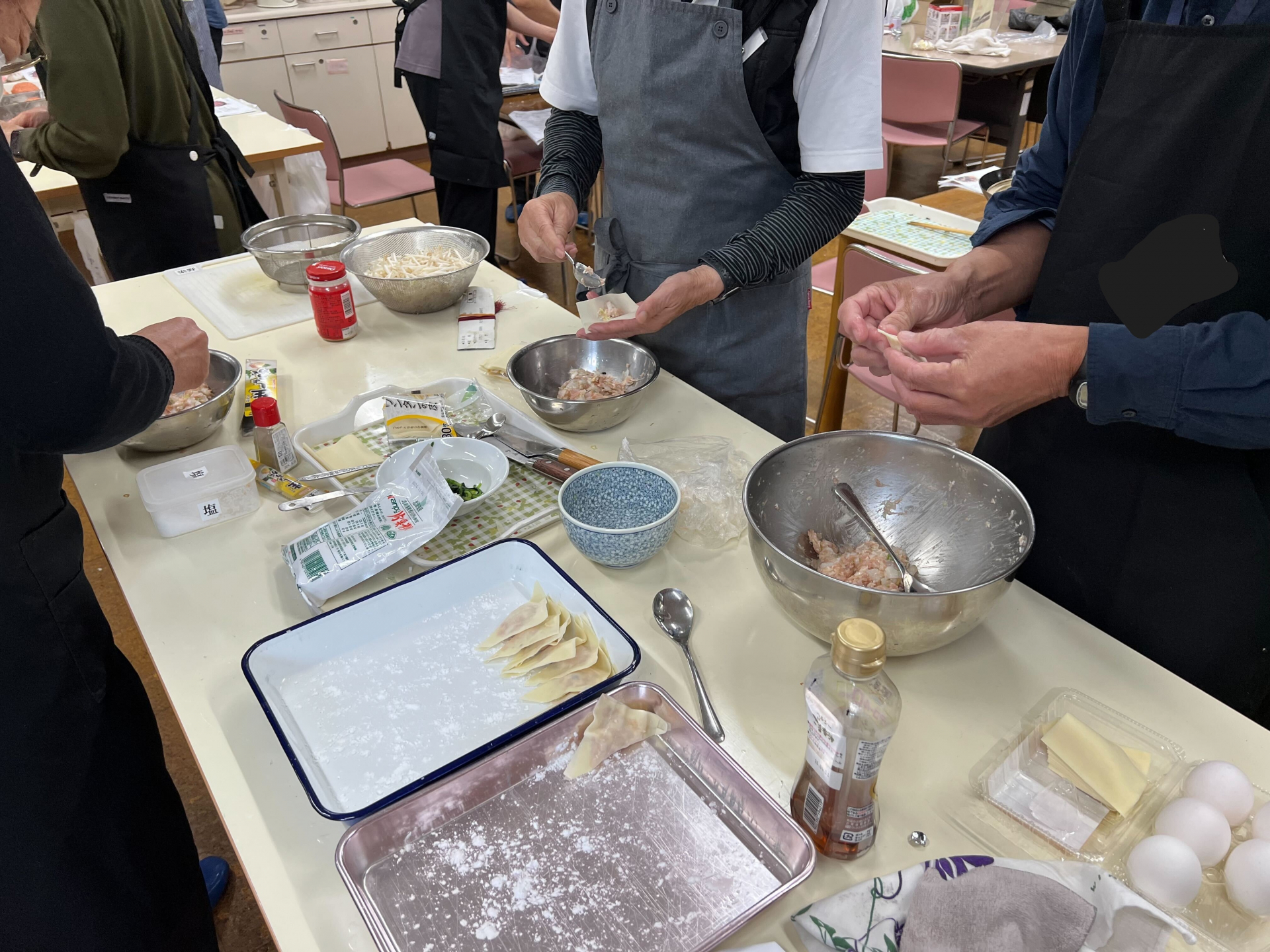 参加されいた方の人数分のハンバーグ・ワンタンのたねを作りはとてもやりがいがあり、皆さんの一丸となって望まれていました。