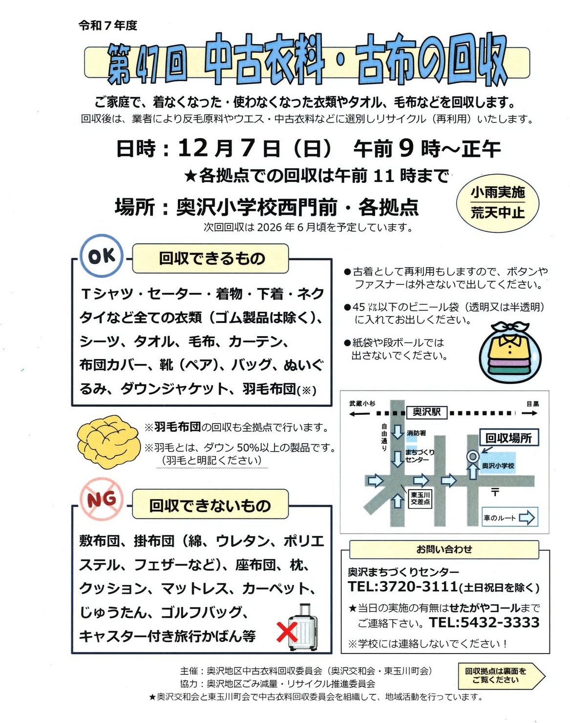 12月7日(日)奥沢地区で行われた中古衣料・古布回収に参加し、