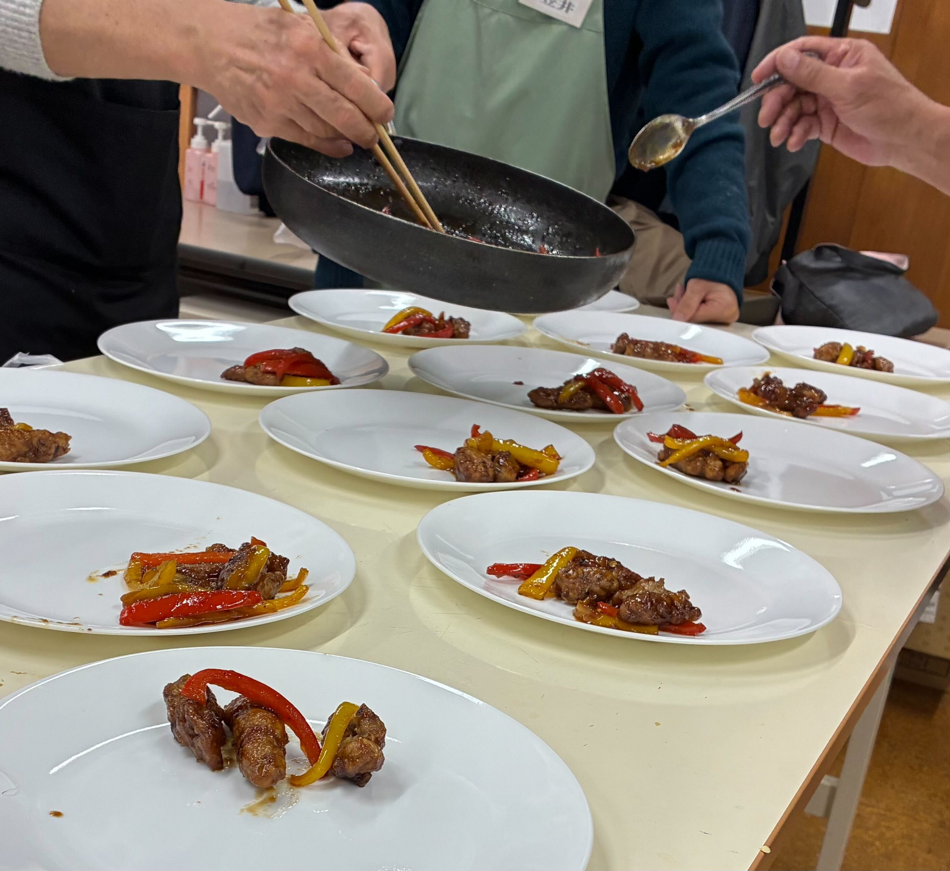 今回は、牛・豚・鶏をフル活用した豪華お肉メニュー! 一品一品を余すことなく、みんなで美味しくいただきました。地元スーパーの開店情報や等倍情報も飛び交い、笑顔と活気にあふれる時間。 「食べる楽しみ+学ぶ楽しみ」がぎゅっと詰まった、まさに盛りだくさんの一日でした。