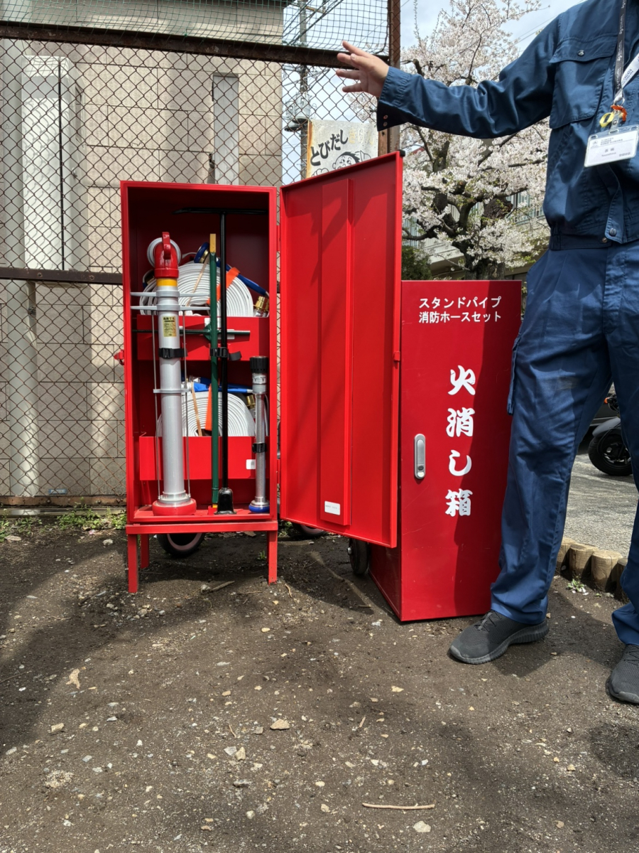 ↑消防署、消防団の皆さまによるスタンドパイプの実演も行われ