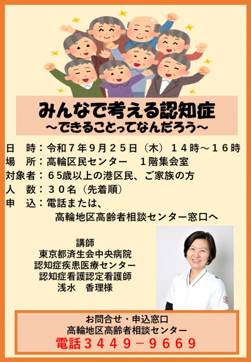 2025.09.08 【白金包括】社会福祉士ミーティングを開催しました 活動報告 2025.09.06 【白金包括】東京都主催研修に参加しました 活動報告 2025.09.04 【白金包括】港区ひきこもり支援事業研修に参加しました! 活動報告 2025.09.03 【白金包括】区民講座「みんなで考える認知症~できることってなんだろう~」を開催します! お知らせ 2025.09.02 【白金包括】認知症疾患医療・介護連携協議会及び研修会に参加しました。 活動報告 2025.09.01 【白金包括】10/16自衛消防訓練審査会への道① 活動報告 2025.08.28 【白金包括】9月家族会開催のお知らせ お知らせ 2025.08.27 【白金包括】気付きのポイント① 活動報告 2025.08.26 【白金包括】8月の家族会を開催しました! 活動報告 2025.08.20 【白金包括】熱中症を予防してこの暑い夏も元気に過ごしましょう お知らせ 2025.08.19 【白金包括】港区クーリングスポットで一休み 活動報告 2025.08.18 【白金包括】どんぐり公園盆踊りのお知らせ お知らせ 2025.08.17 【白金包括】セルフチェック会in高輪 活動報告 2025.08.16 【白金包括】優っくり村高輪台運営推進会議に出席しました 活動報告 2025.08.15 【白金包括】権利擁護テーマ別実践研修に参加しました 活動報告 1 … 3 4 5 6 7 … 41