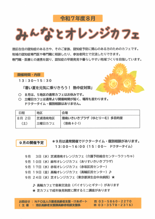 2025.08.14 【白金包括】8月実態把握ミーティング実施しました 活動報告 2025.08.13 【白金包括】社会福祉士ミーティングを開催しました! 活動報告 2025.08.12 【白金包括】四の橋夏祭りにて、血管年齢測定・握力測定を行いました! 活動報告 2025.08.11 【白金包括】熱中症に気を付けてください! お知らせ 2025.08.10 【白金包括】東京マイ・タイムライン講習会に参加しました! 活動報告 2025.08.09 【白金包括】見守り委員会に出席しました。 活動報告 2025.08.08 【白金包括】8月21日 介護家族の会を開催します。 活動報告 2025.08.07 【白金包括】所内チームミーティング 活動報告 2025.08.06 【白金包括】高輪地区 みんなとオレンジカフェ8月はお休みです! お知らせ 2025.08.05 【白金包括】介護予防リーダー養成講座卒業式に参加してきました。 活動報告 2025.08.04 【白金包括】みまもり新鮮情報 お知らせ 2025.08.03 【白金包括】バランス足腰元気教室の最終評価に行ってきました。 活動報告 2025.08.02 【白金包括】講演会「41歳で認知症と診断された母と息子の物語~ひとりじゃないき~」に参加しました! 活動報告 2025.08.01 「SDGsサロン高輪」にお邪魔しました! 活動報告 2025.07.27 【白金包括】7月18日 高輪オレンジカフェ 活動報告 1 … 4 5 6 7 8 … 41