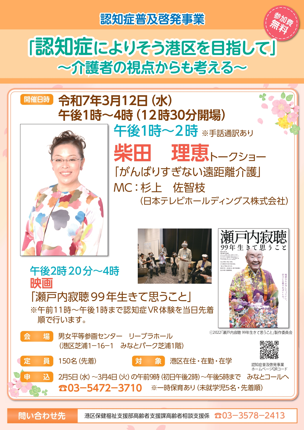 3月12日(水)、港区では認知症普及啓発事業が開催されます。