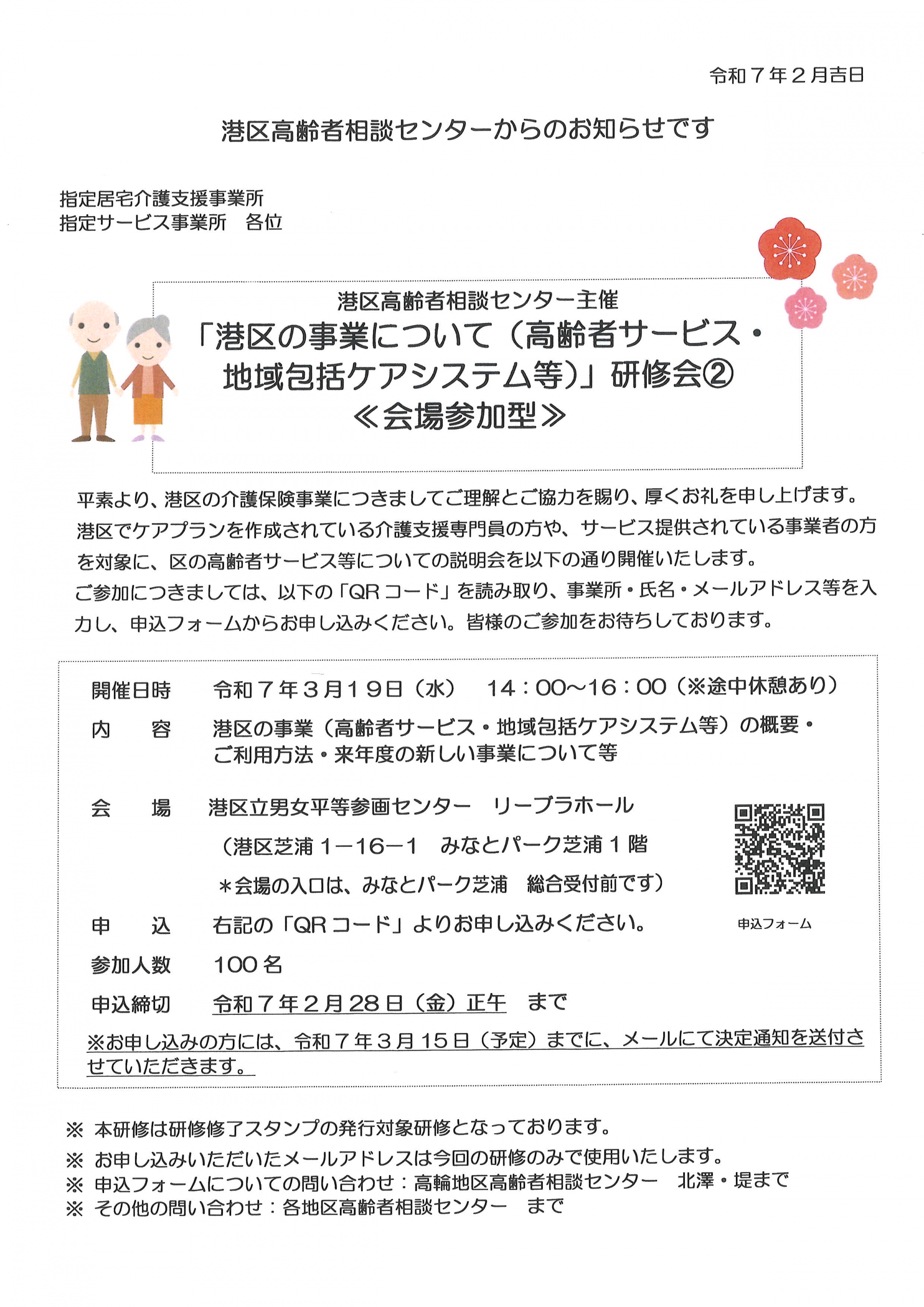 港区高齢者相談センター主催、『港区にの事業について(高齢者サービス・地域包括ケアシステム等)』研修会➁を開催いたします。
