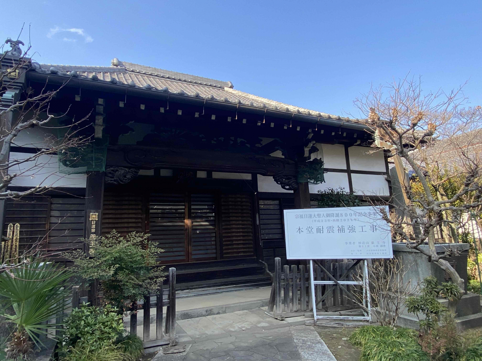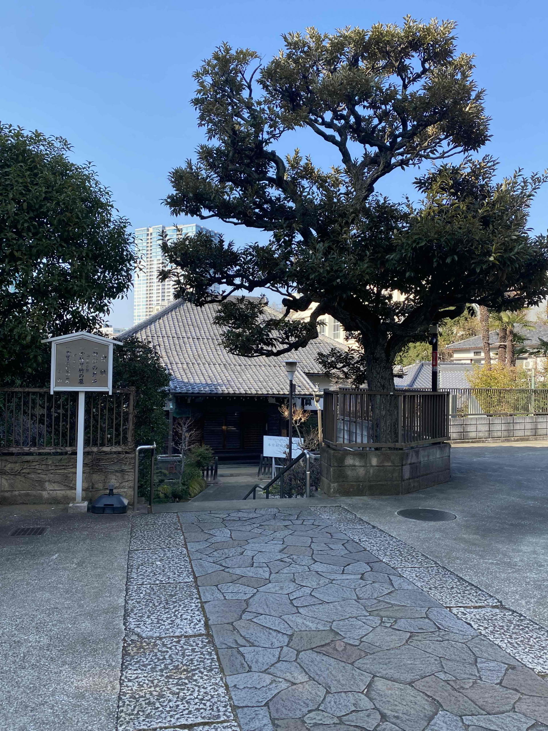 場所は、三田4丁目8-23、『魚籃坂下』の交差点から魚籃坂を上って、途中の『伊皿子交差点』の手前を左に入った道沿いにあります。日蓮宗のお寺で、1615年(元和元年)に本化院日桂上人によって開山されました。元々は麻布狸穴に建てられましたが、元和7年に現在の三田4丁目に移転されました。