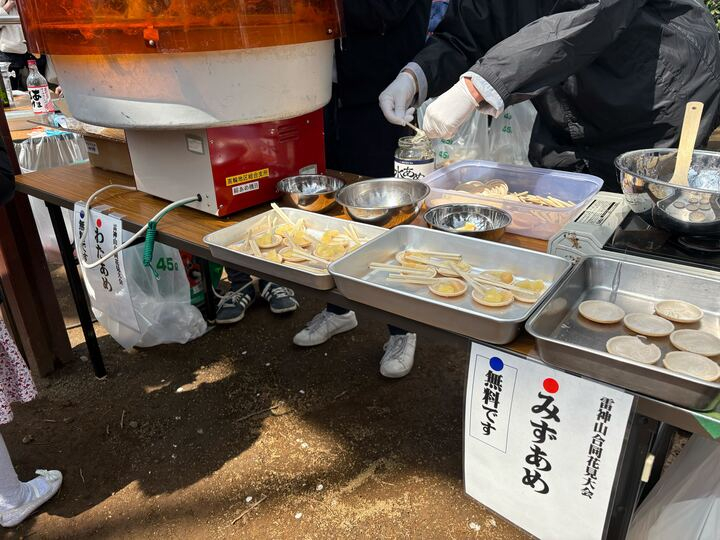 水あめやフランクフルト、焼きそばなどの屋台も出ており、